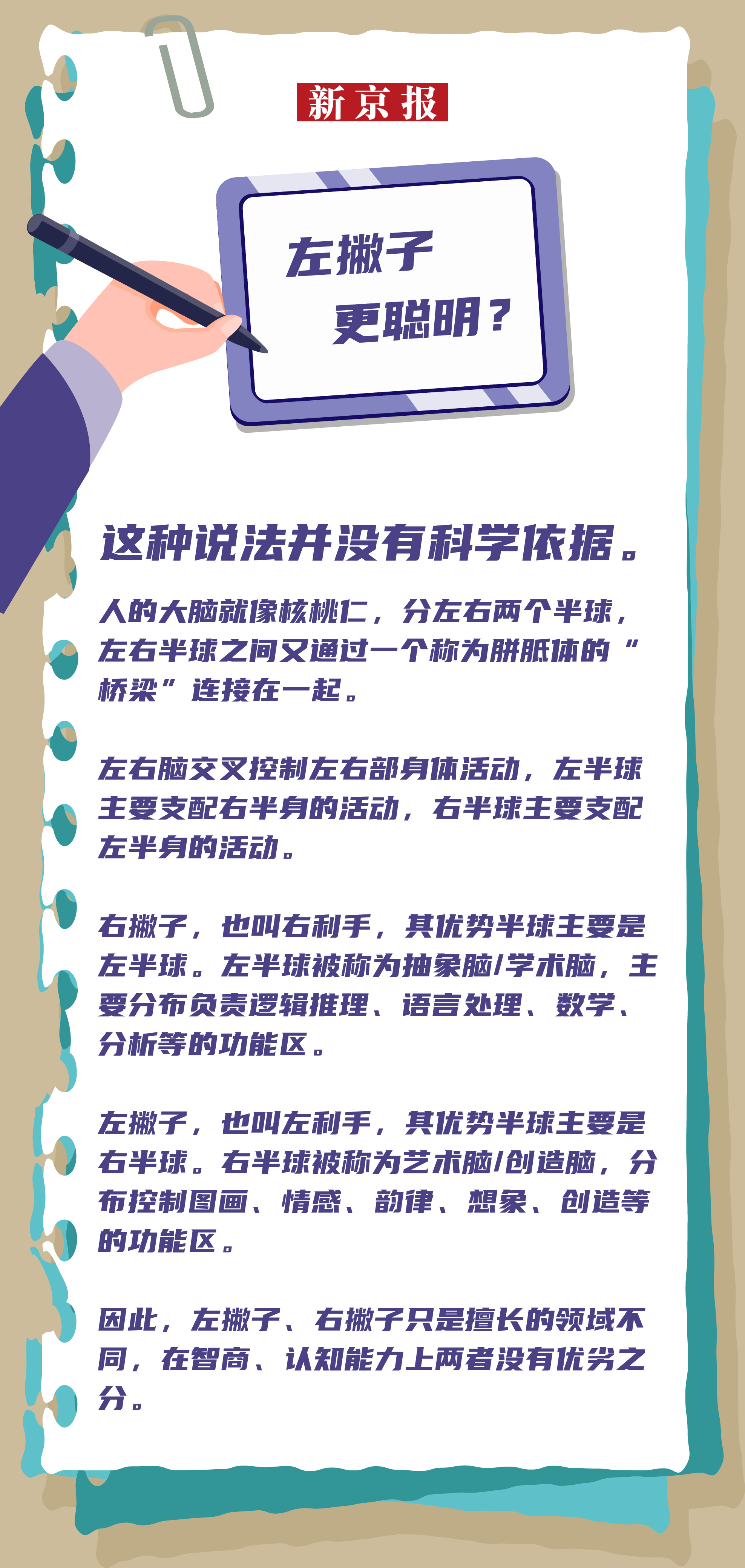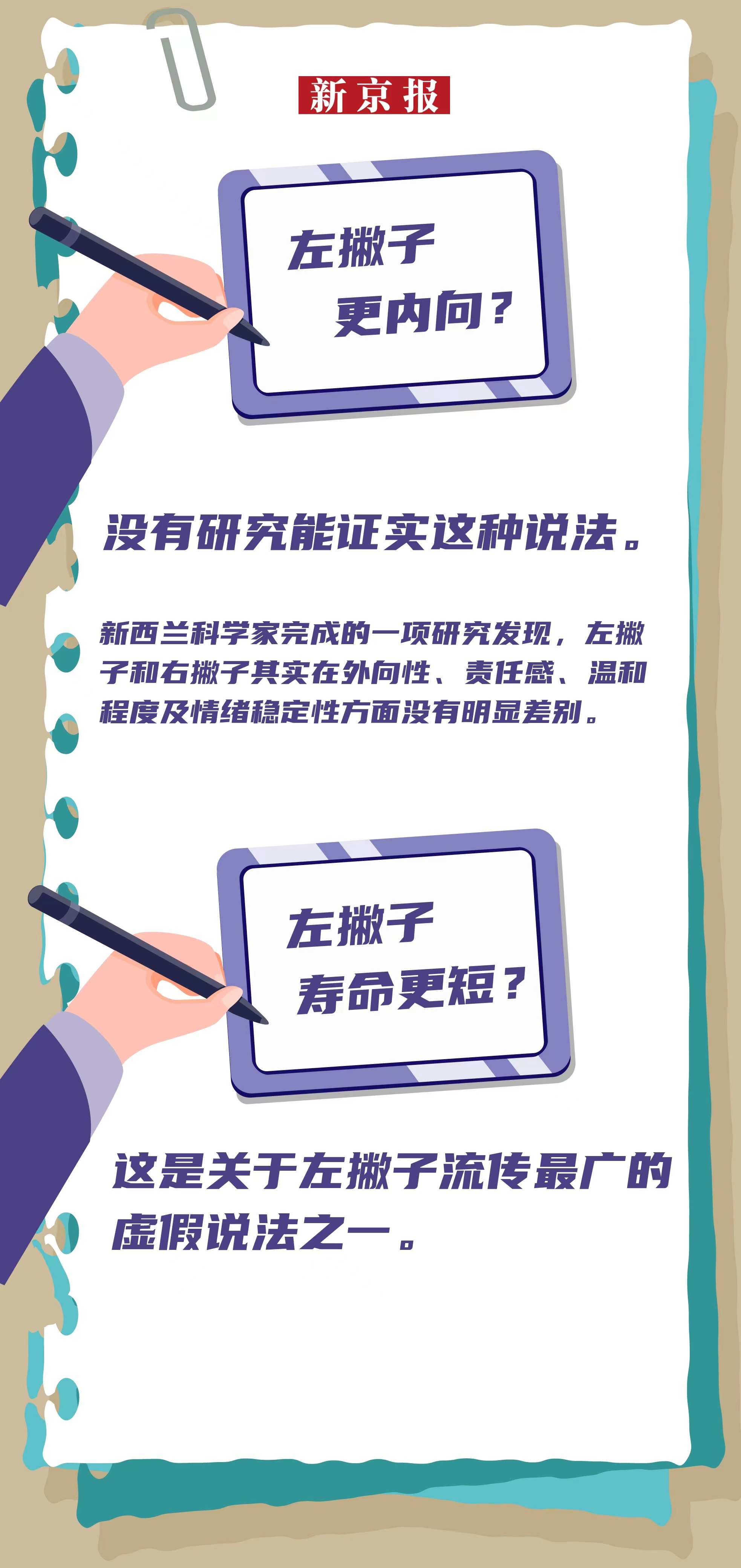 左撇子会更聪明?孩子左撇子要强行纠正?天才和左手之间存在某种必然联系?8月13日是“国际左撇子日”,有研究表明左撇子数量约占全世界人口10%。也就是说,平均每10个人中就可能有1个左撇子。据估算,中国约有8000万人是“左撇子”。左撇子并不罕见,但关于左撇子的误解有很多>>>