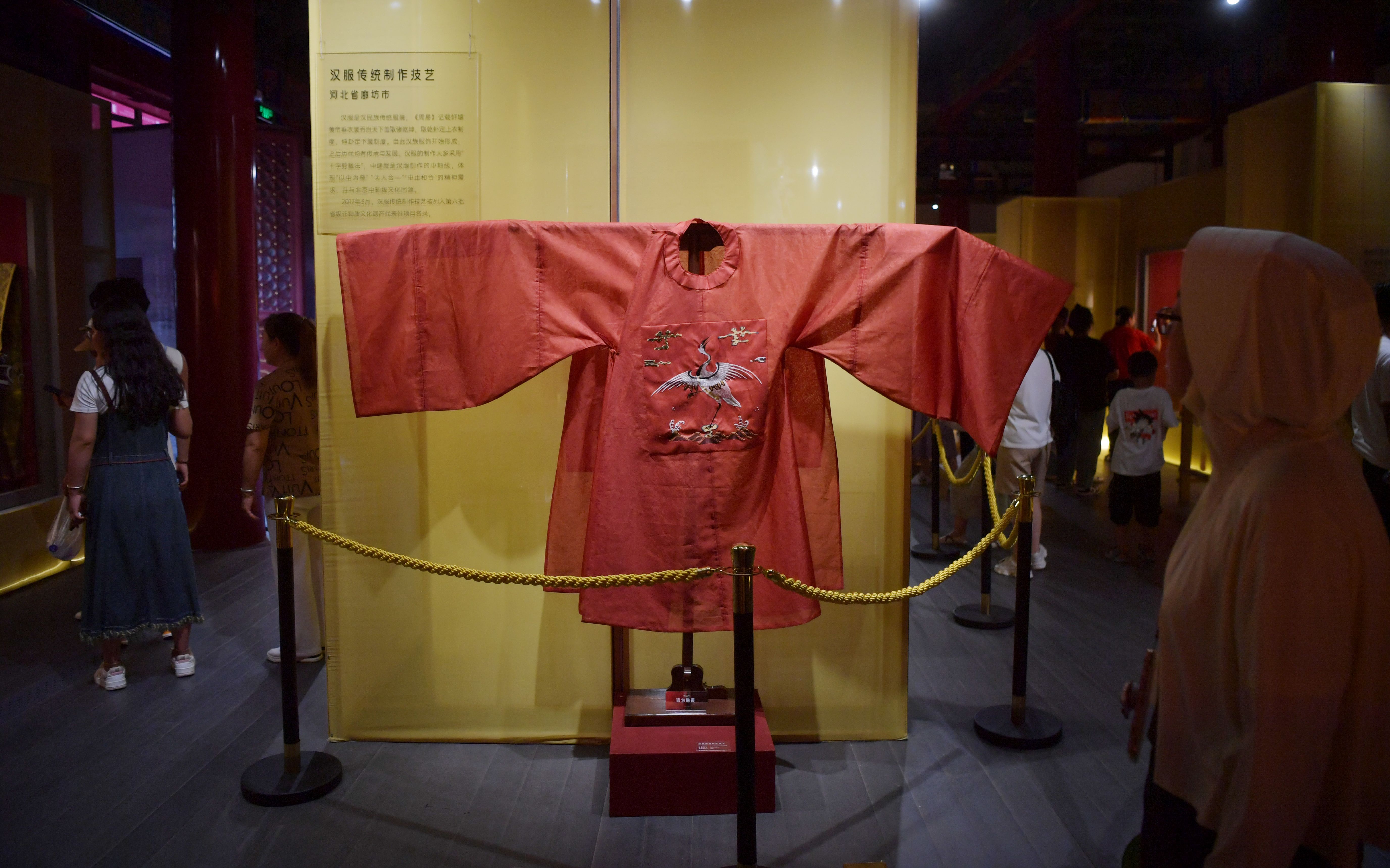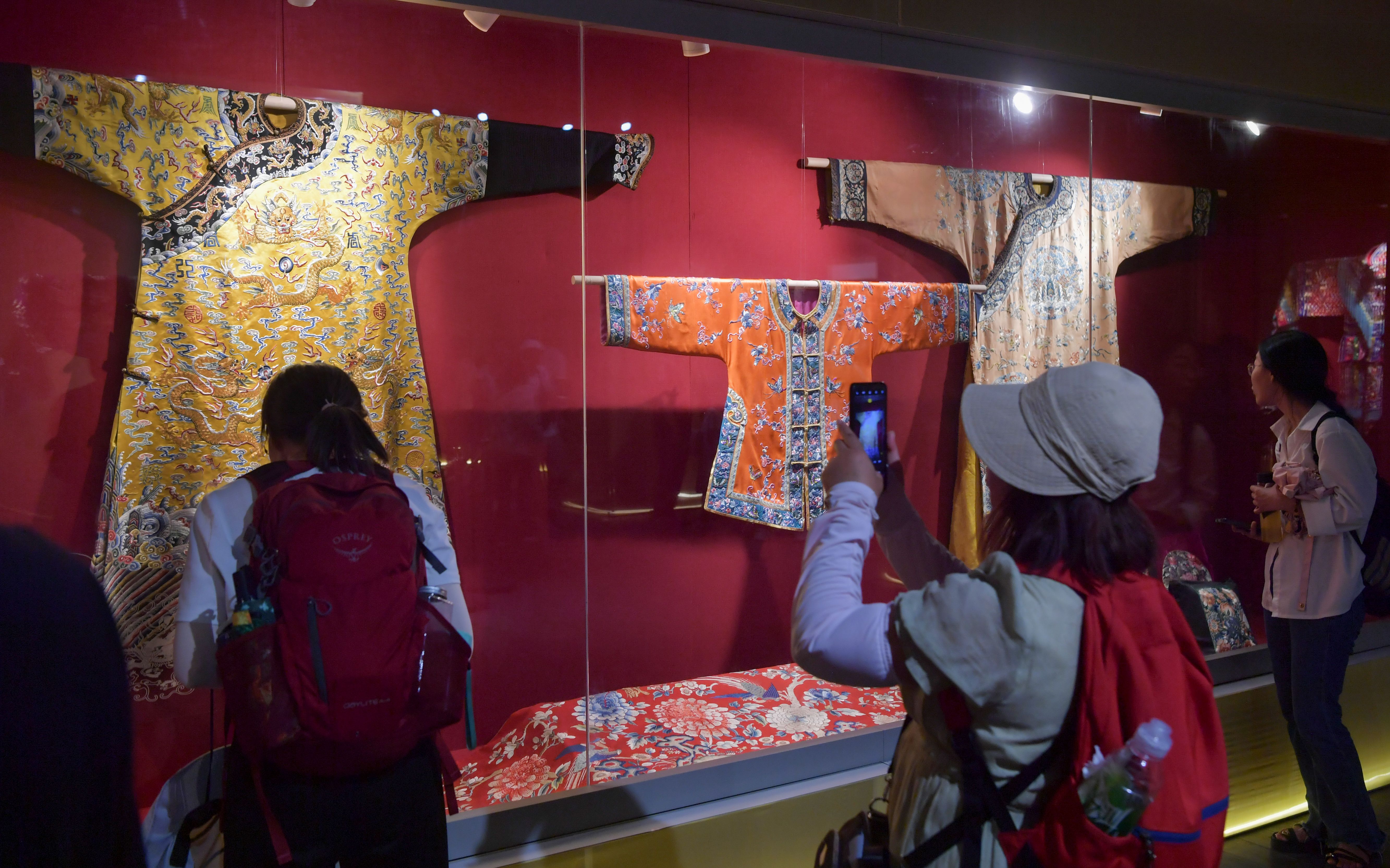 新京报讯(记者张璐)8月14日,锦绣中华·紫禁之巅——传统织染绣艺术与生活展在北京景山公园开幕。本次展览汇聚了与中轴线相关的多项宫廷织绣艺术项目,除静态展览外,还将结合戏曲、音乐、舞蹈、曲艺等表演。