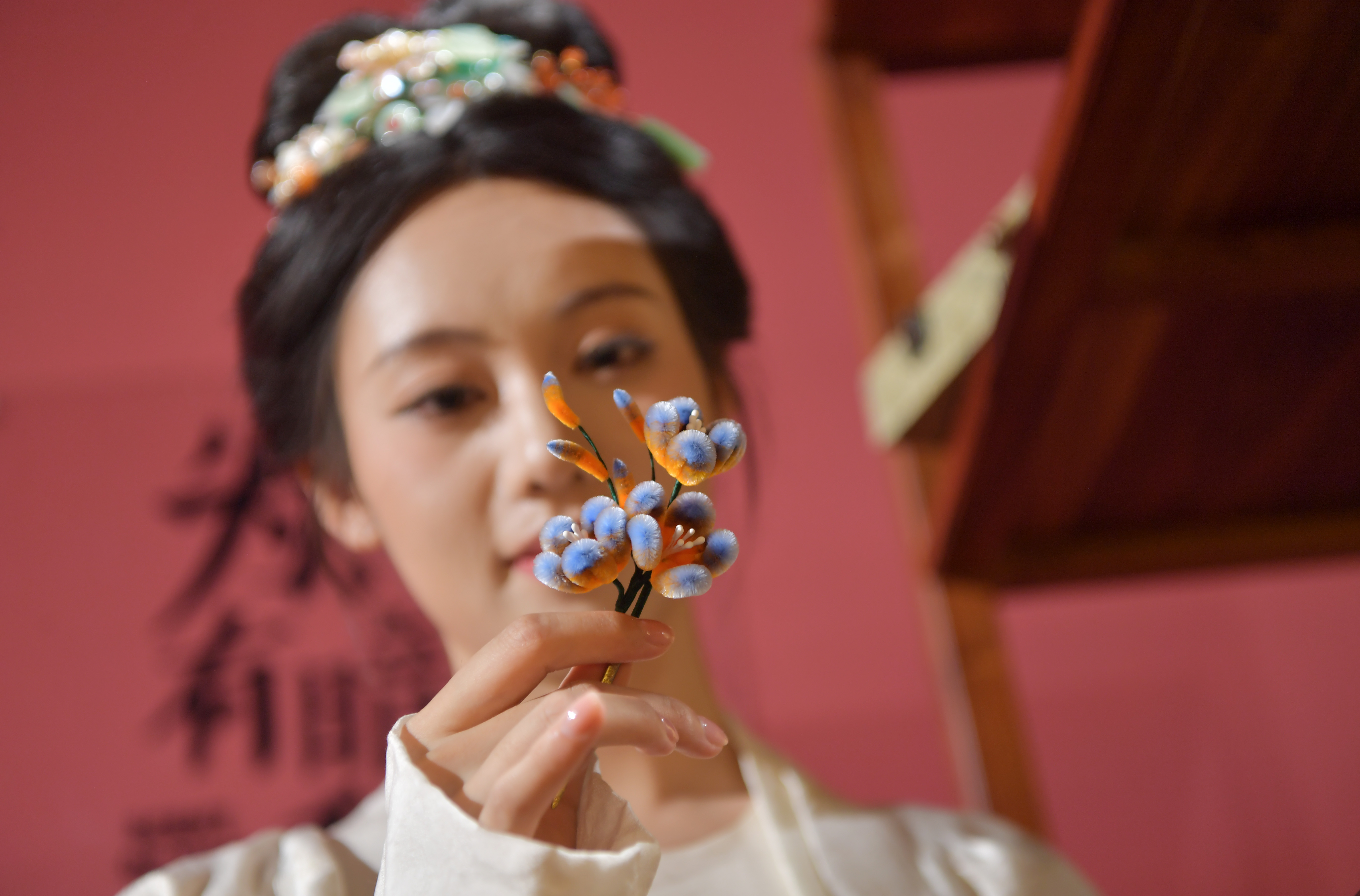 展览还介绍了剧装戏具制作技艺、清宫传统刺绣、宋锦织造技艺、蜀锦织造技艺等知识。云锦圆饼包、蜀锦文创领带、宋锦团扇等展品营造了非遗走入人们日常生活的氛围,通过互动性与参与性的展示方式让更多人关注和传承传统文化。