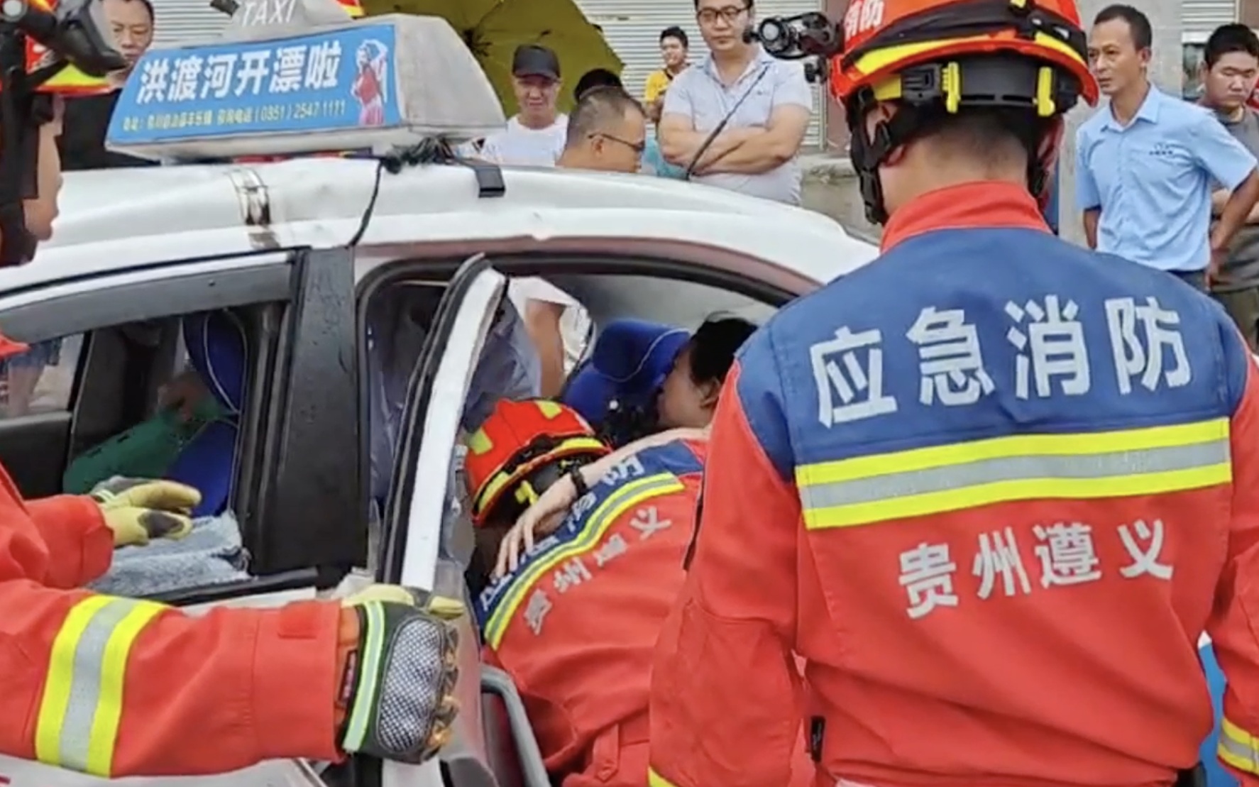 遵义市凤冈县消防救援大队救援人员告诉记者,8时45分接到遵义支队指挥中心调度,消防站1车7人前往处置。救援人员表示,此次车祸是由于路面湿滑引发的交通安全事故。一辆出租车和滴滴车相撞,出租车后座1名乘客被困。