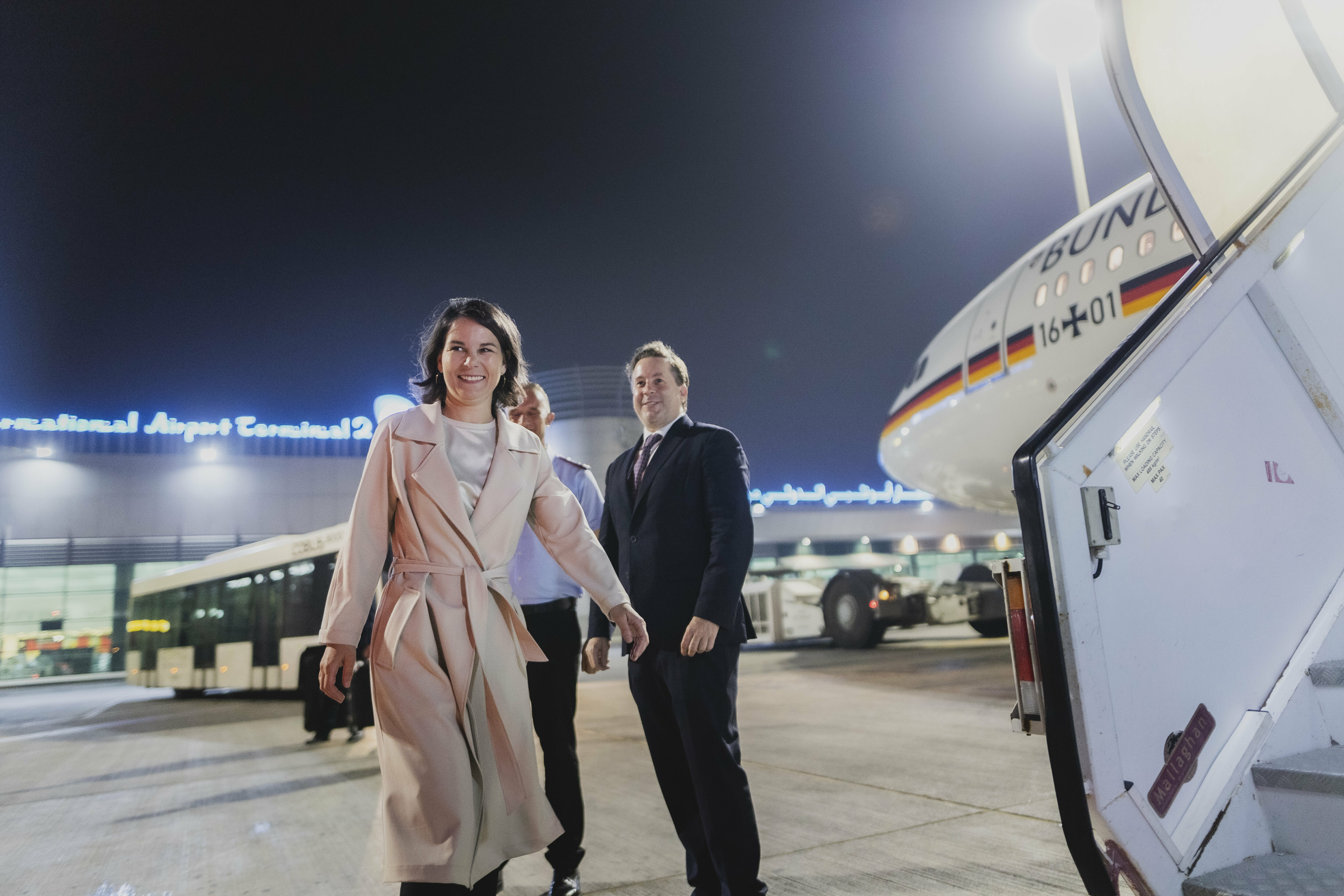 ▲当地时间2023年8月15日,阿联酋首都阿布扎比,德国外长贝尔伯克在阿布扎比国际机场重新登上专机,没想到同样的故障再度出现。图/IC photo