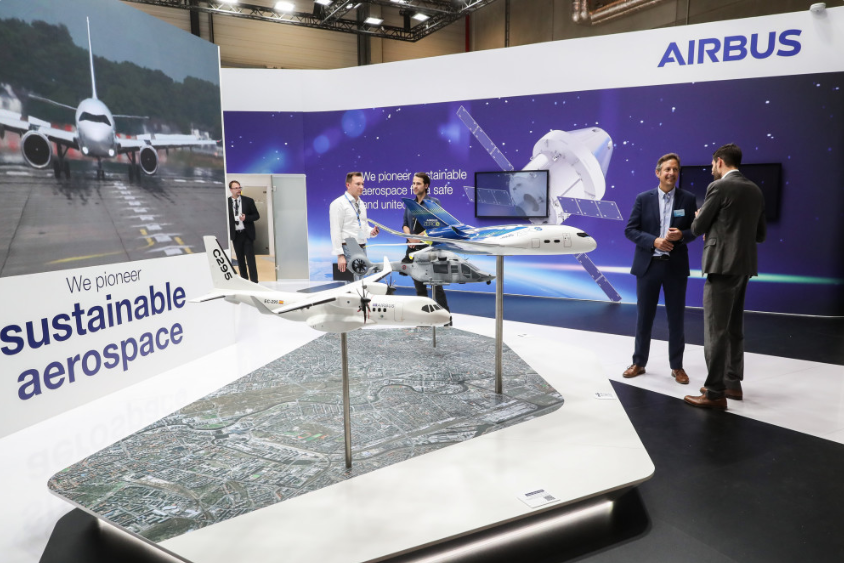 ▲资料图:2022年6月22日,在德国首都柏林南郊,人们在空中客车公司展区交谈。图/新华社