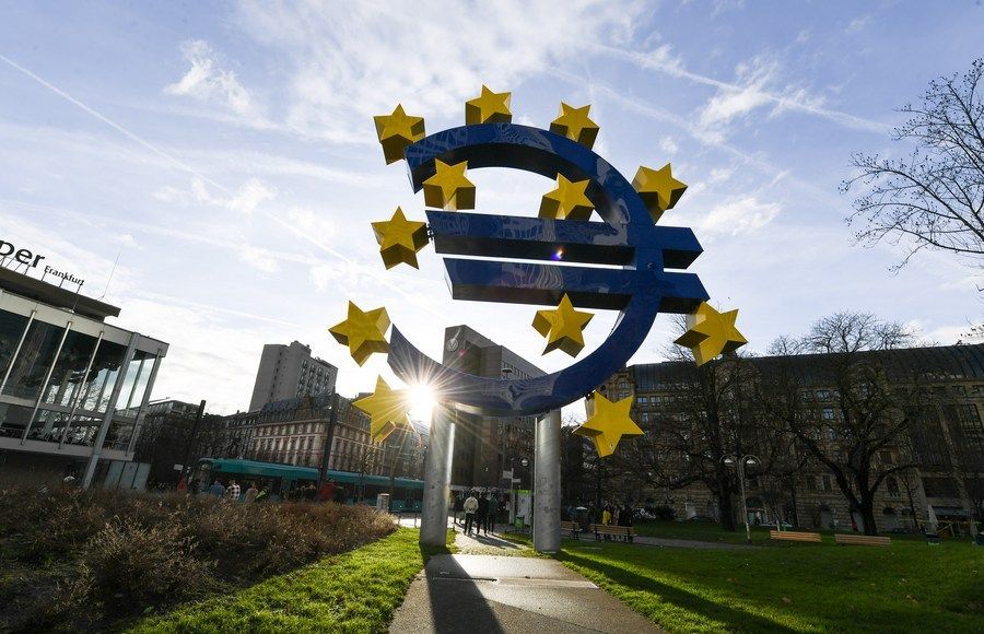 ▲资料图:这是2021年12月30日在德国法兰克福拍摄的欧元雕塑。图/新华社