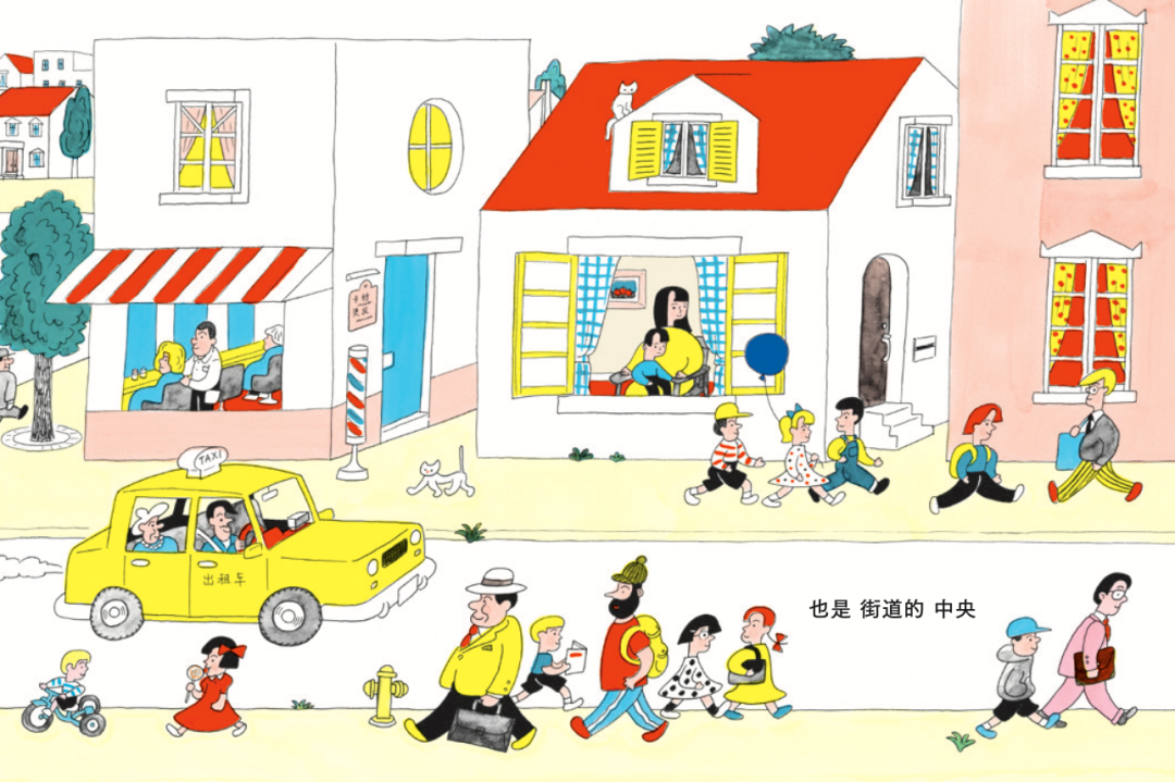 诗歌简单童稚又富有变幻——“这里,是妈妈的膝头,也是街道的中央。是公园的附近,也是椅子的上面……是我心跳存在的中心,也是宇宙的正中心。这里,是我的正中心。”