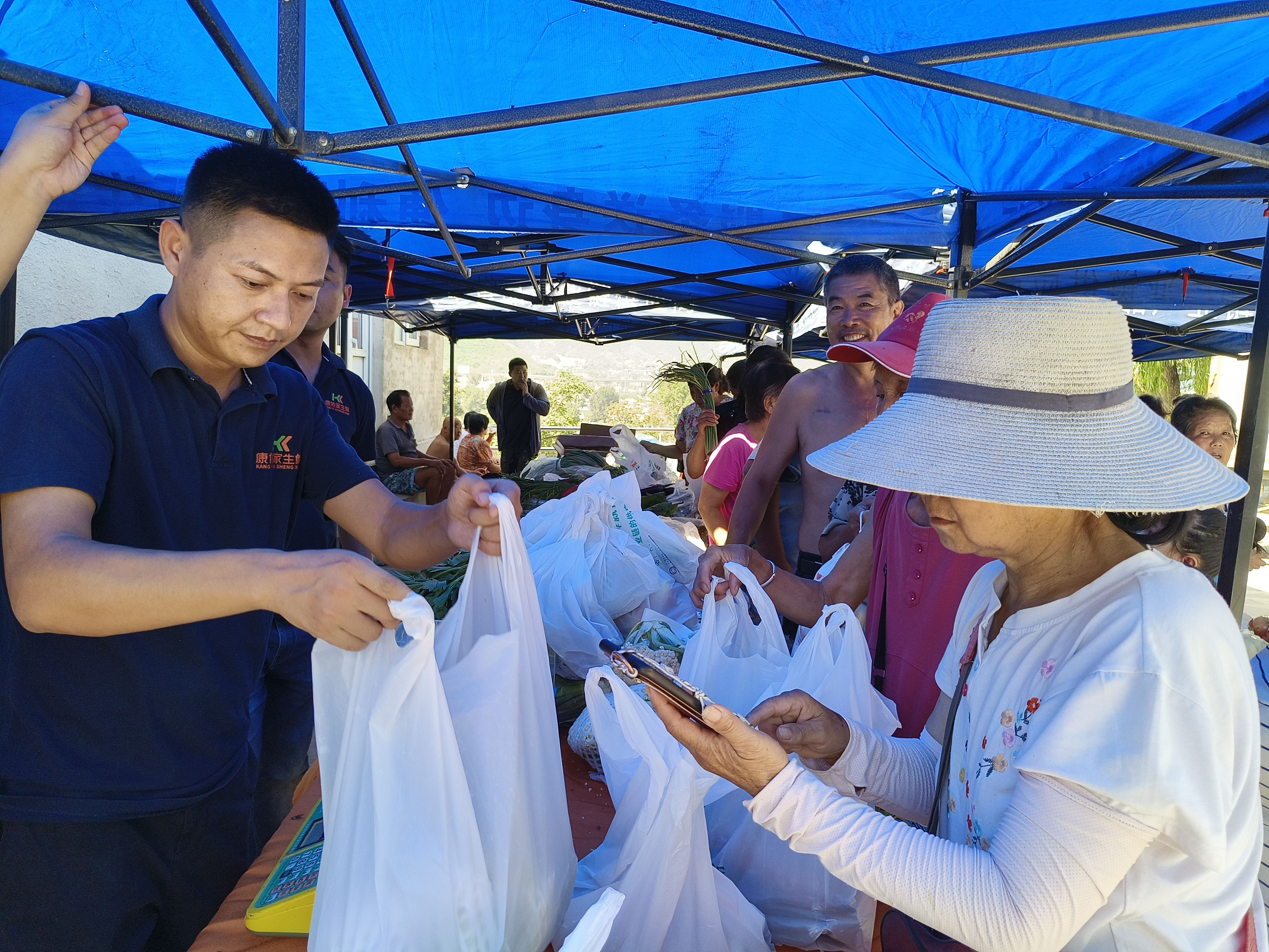 “我们的‘蔬菜直通车’7点半左右从区里出发进山,开车两个小时左右。现场提供的蔬菜、水果都是新鲜的,比如大桃就是从平谷直供的。同时也很实惠,我们基本上是以成本价卖给老百姓,所以今天的人很多。”北京康依家商业连锁有限公司负责人邹刚介绍,“我们是第一次开进这个村里,后续会根据村民的需求固定或增加频次。”
