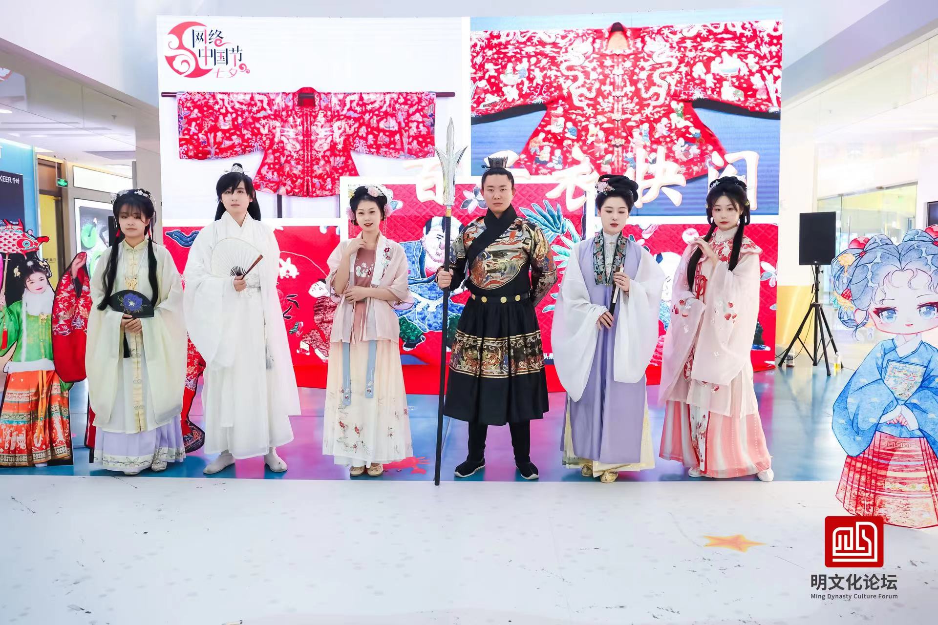 新京报讯(记者田杰雄)8月19日,若干身着华丽汉服的青年人齐聚昌平乐多港,为商业街区又增添了一抹亮色与特别的文化氛围。记者获悉,这是作为2023明文化论坛系列活动之一的“百子衣”快闪活动,消费者和游客可通过跨越时空距离的数字图文展示,以及现场“变装”打卡等趣味方式,沉浸式感受明代文物之美。