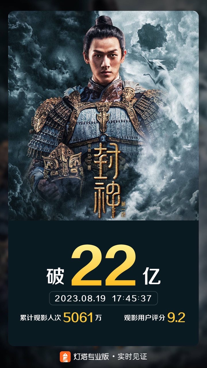 《封神第一部》票房突破22亿。