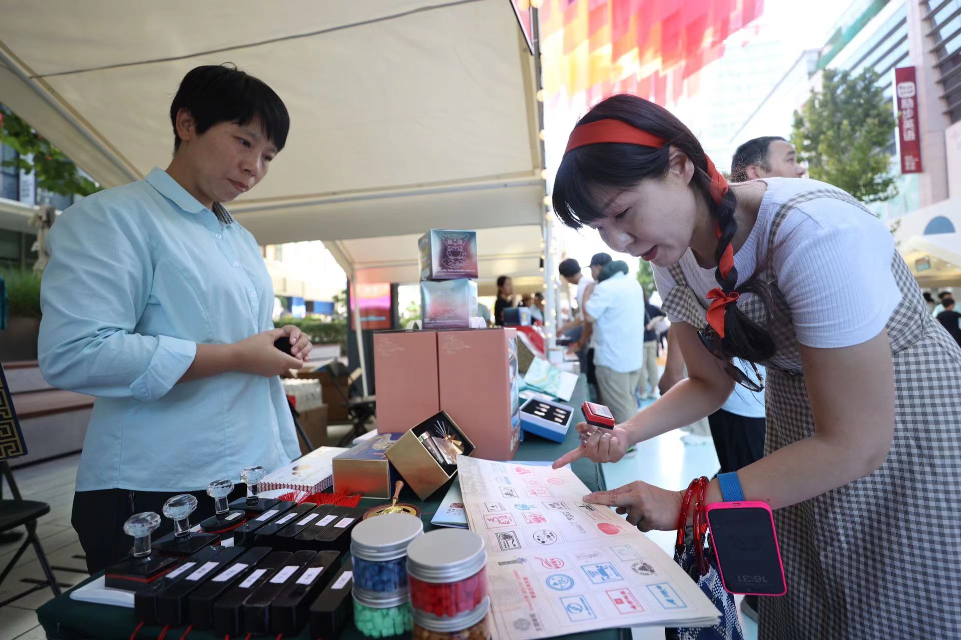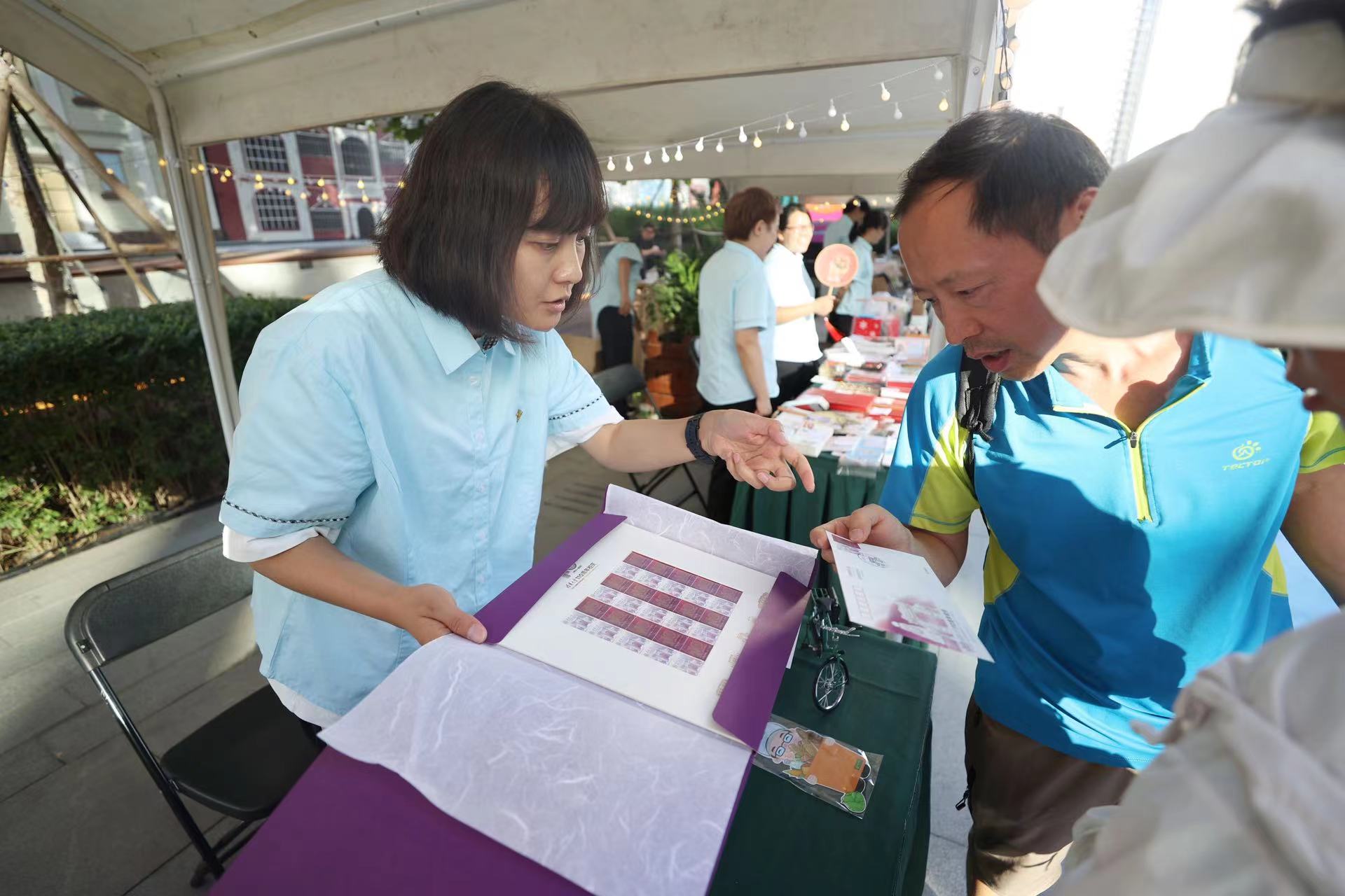 此次市集连续5天推出不同主题的市集活动。记者看到,七夕爱情纪念戳上设计有一颗爱心,纪念戳的中心位置则是一封待拆封的爱的信件;昆虫邮票首发日纪念戳上则画了一只小虫。此外,望京小街定制纪念戳也将在市集上亮相。
