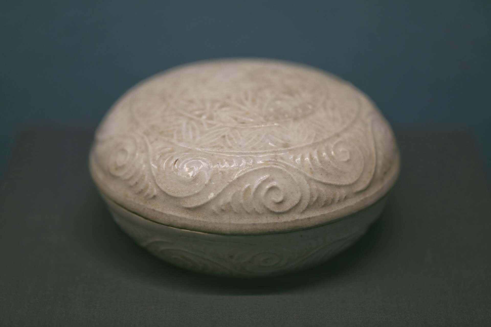 元代印花粉盒,德化县陶瓷博物馆藏。新京报记者 浦峰 摄