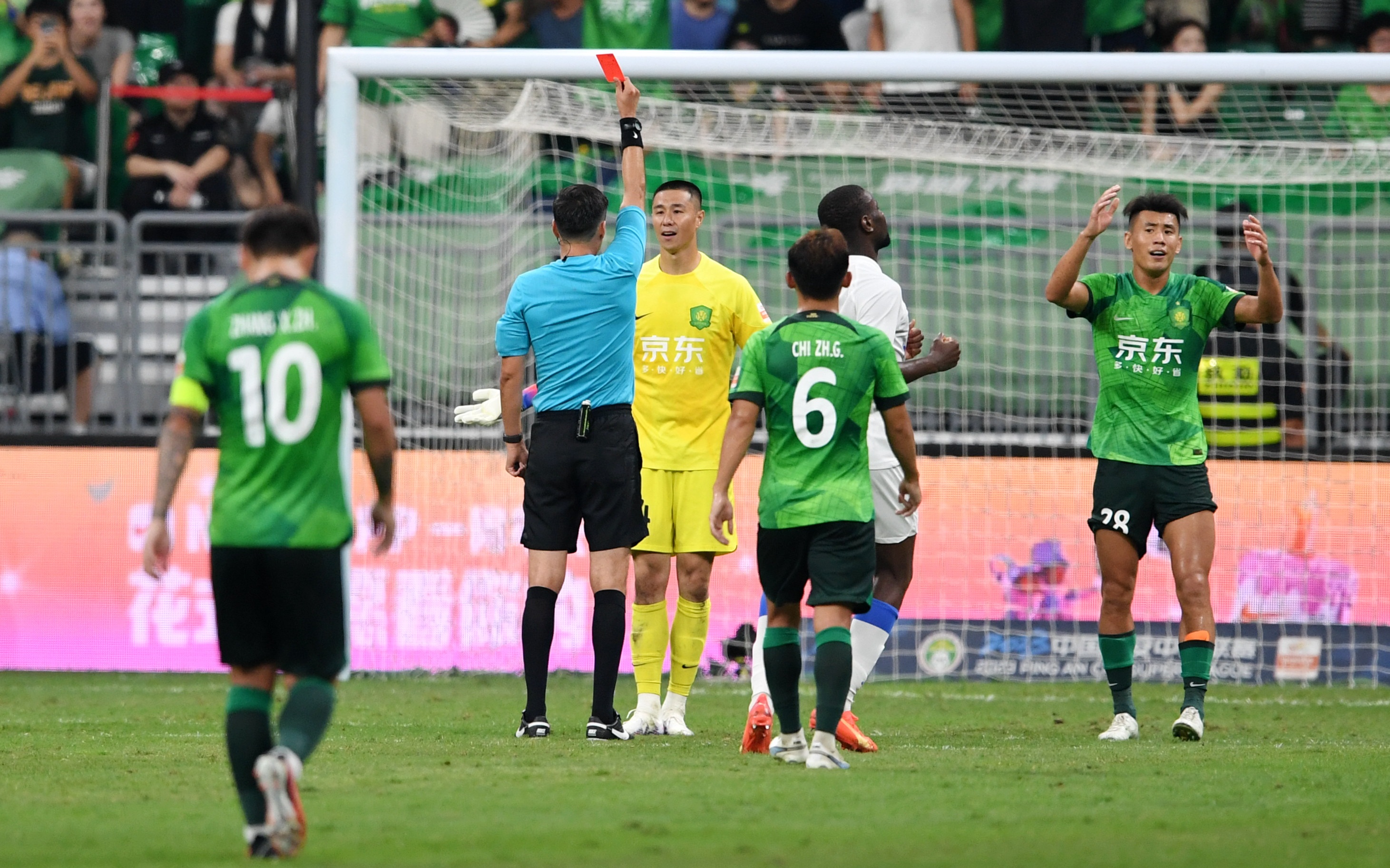 国安门将侯森将因上轮联赛的红牌停赛。 图/新华社