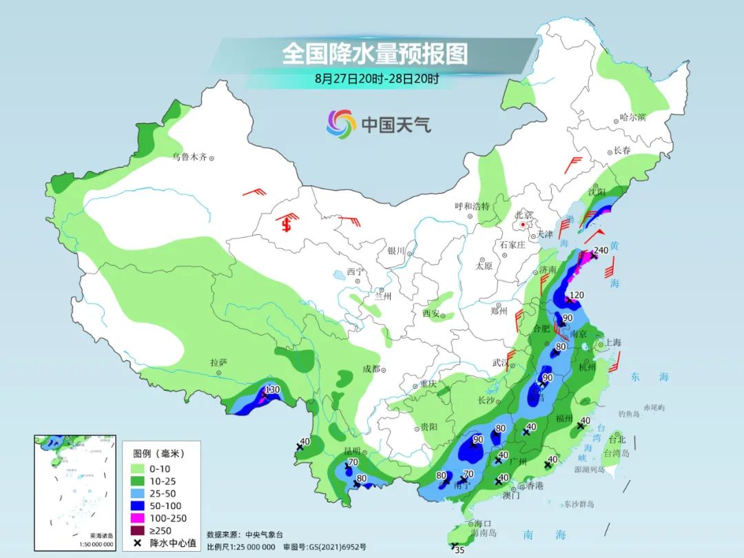随着低涡系统东移入海,降水核心将逐步转移。不过,这轮降水最强时段即将过去,明天我国强降雨范围将明显缩减,降雨强度也将减弱。