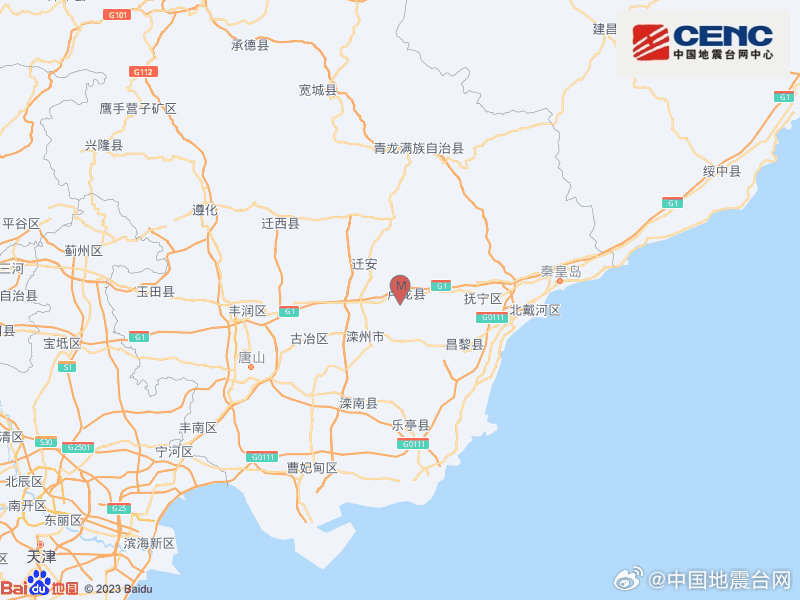 河北秦皇岛市卢龙县发生2.3级地震,震源深度15千米