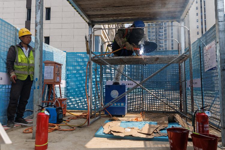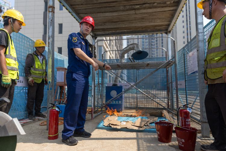 消防队员现场讲解可能存在的安全隐患和应急处理方式。目前,大兴区对各施工现场要求:从事电焊前必须在企安安系统中进行报备,作业时必须携带《动火证》,并要有专人对施工现场进行可燃物清理,携带灭火器材、消防水桶等进行看护。