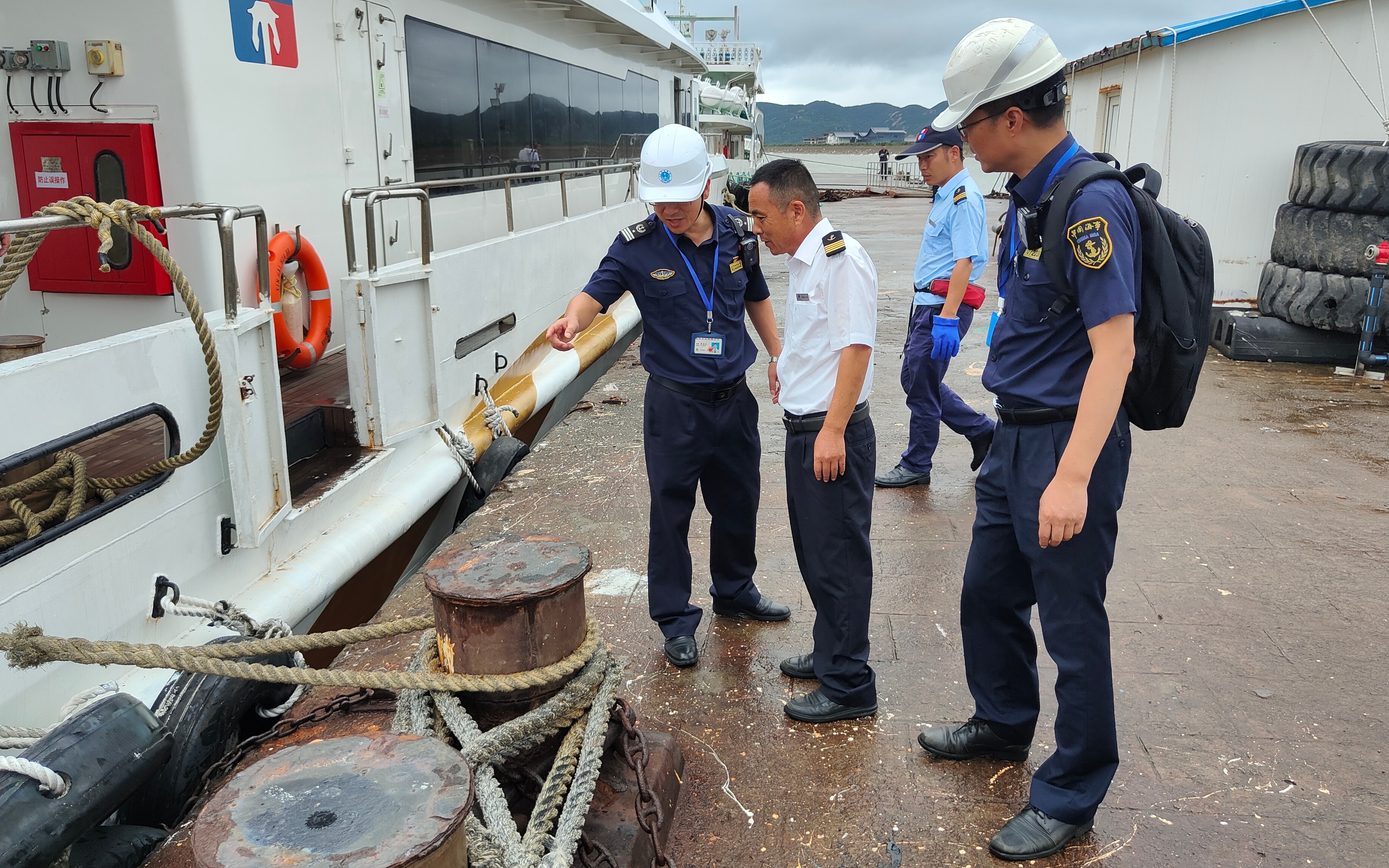 海事局执法人员对重点船舶、重点水域开展防台风险隐患排查工作。舟山海事局刘浩立 摄