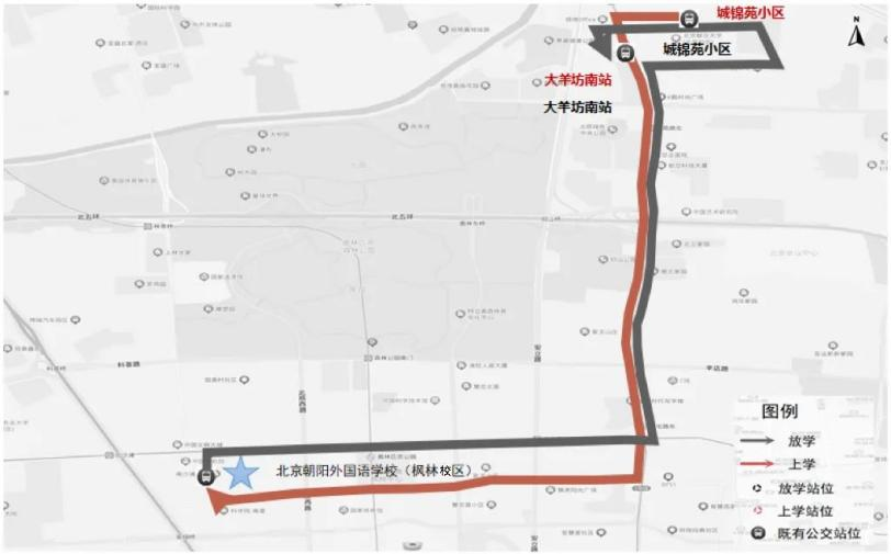 站点设置:城锦苑小区站→大羊坊南站→科学园南里中街站(学校端)