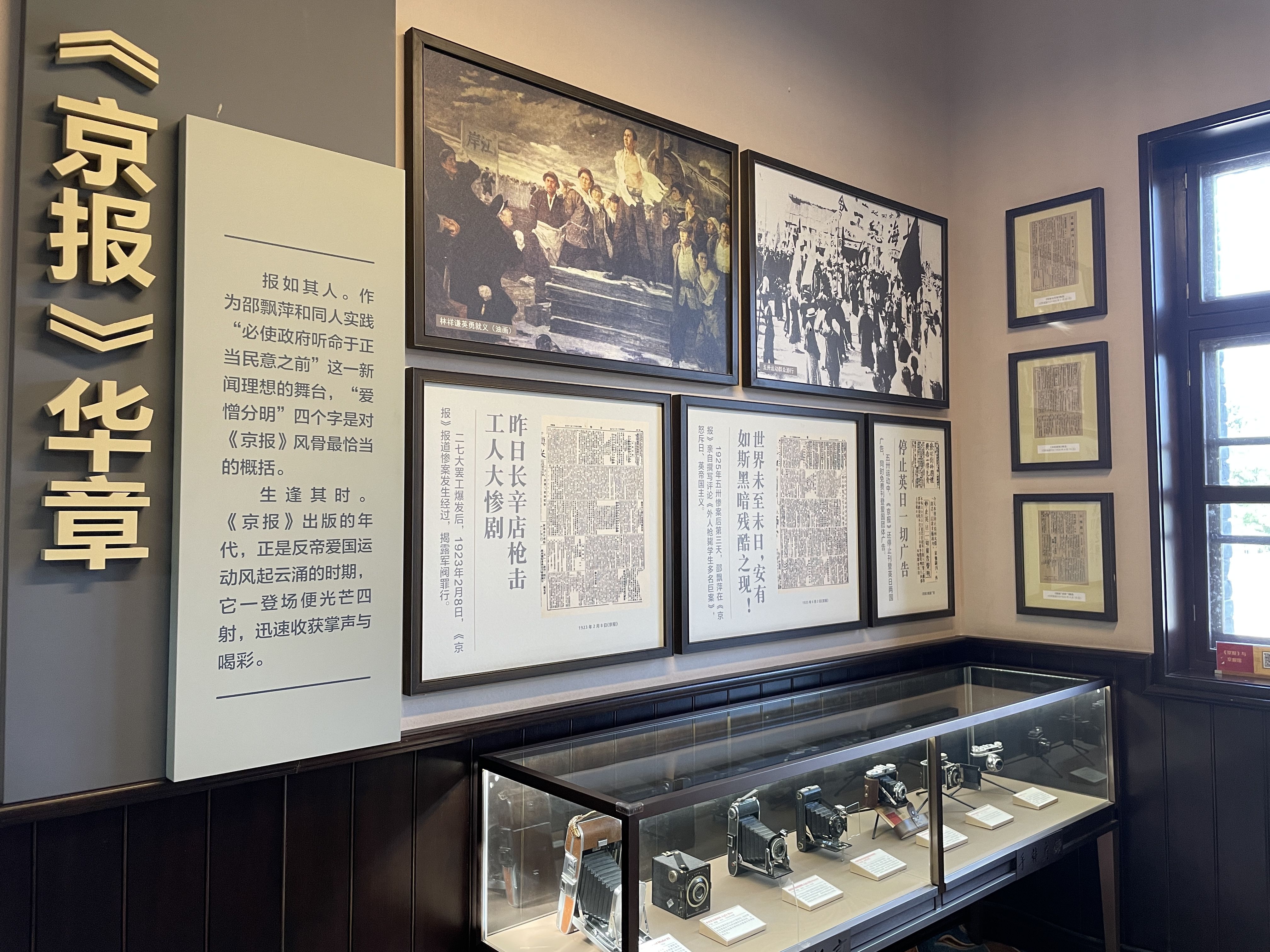 记者在采访过程中,碰到了带着笔记本等前来盖章打卡的观众。据展馆负责人介绍,有的游客甚至一天打卡了14个点位。不同的旧址展馆准备了不同的打卡印章,其中京报馆旧址除了标志性京报馆的印章,还准备了“铁肩辣手”“爱用国货乃振兴实业之良方也”“京报馆旧址”等多种印章,观众还可以现场体验报纸印刷。