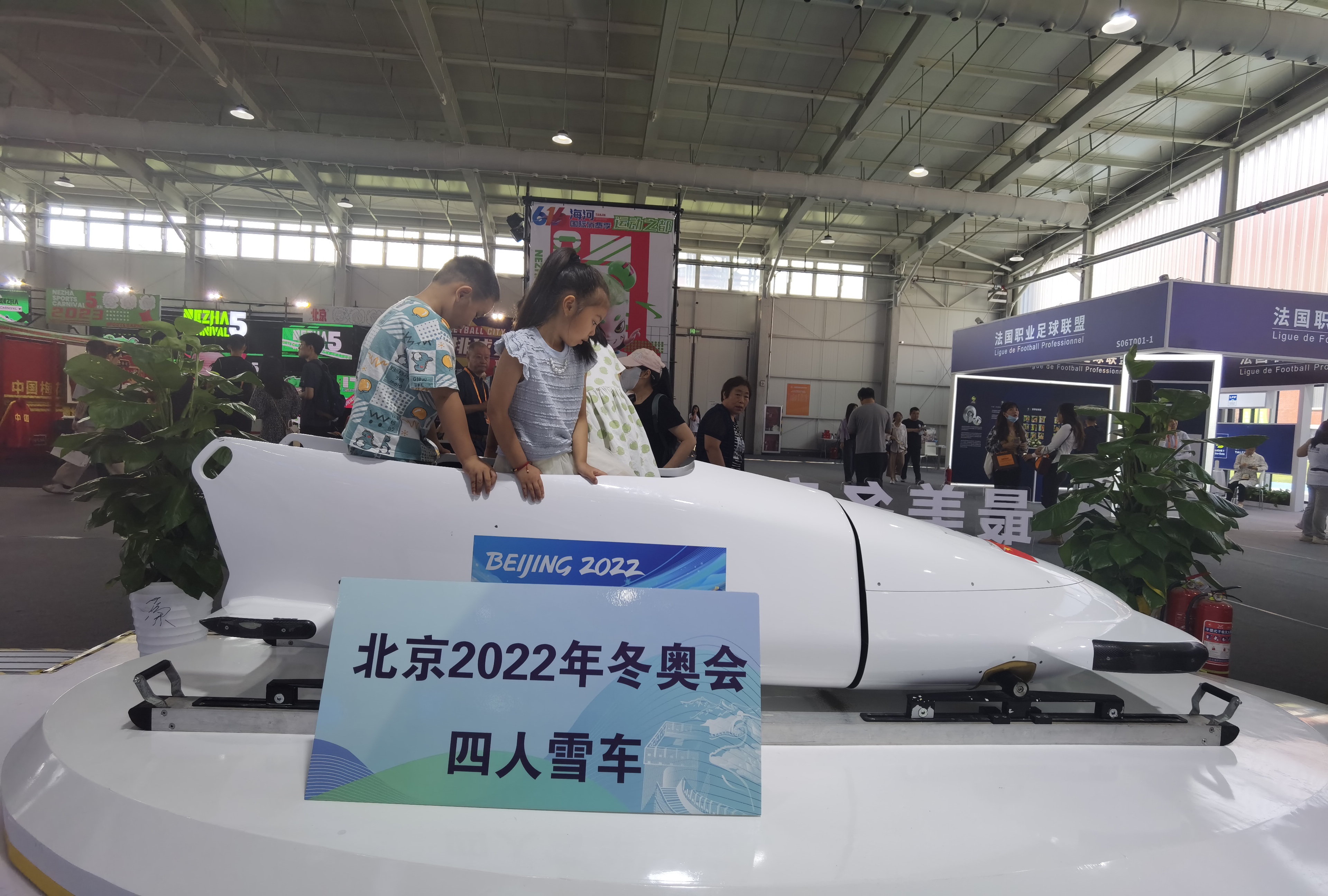 9月3日,服贸会延庆展区,几名小朋友正在体验曾出战北京2022年冬奥会的四人雪车。新京报记者 王贵彬 摄