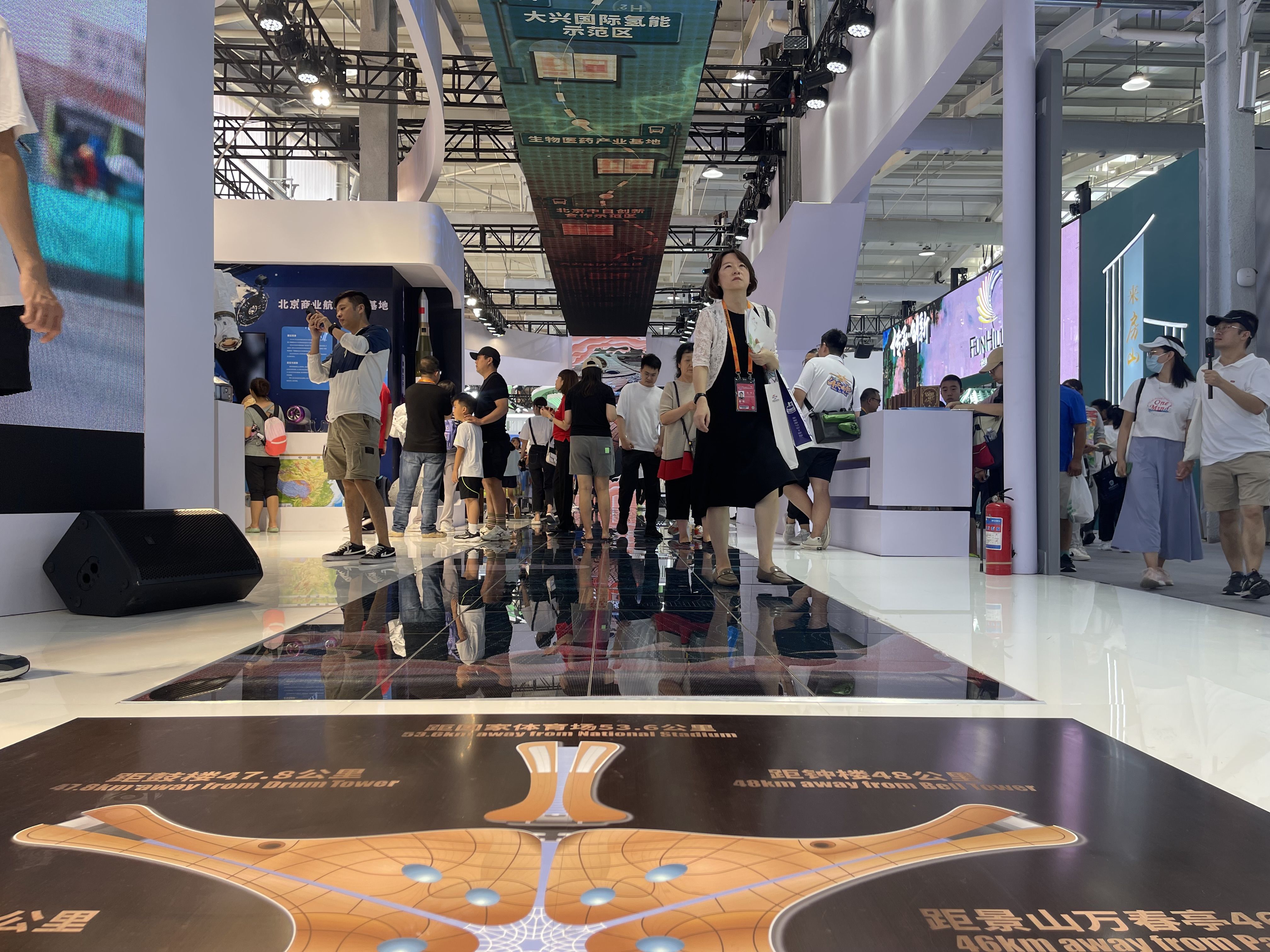 服贸会首钢园大兴区文旅展厅,沉浸式多媒体步道串联起大兴区多个地标建筑和景区。新京报记者 吴婷婷 摄