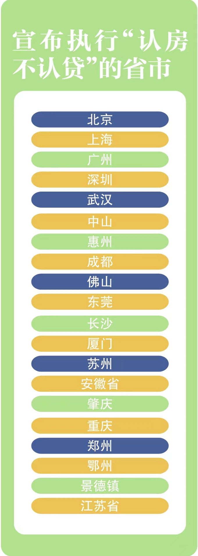 此前,严格执行“认房又认贷”的城市主要集中在北上广深这四个一线城市以及热点二线城市如厦门、西安、长沙、杭州、福州、天津、青岛、合肥、重庆、济南、石家庄等。