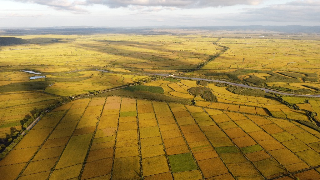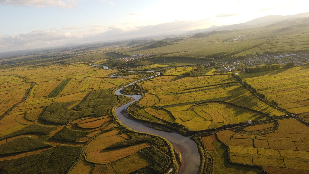 蜿蜒的河流,金色的稻田,构成了北国金秋的盛景。新京报记者 周怀宗 摄
