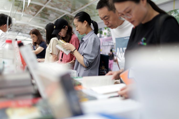 读者翻阅图书。本届北京图书市集·秋季场以“阅读的诚意”为主题,优选100余家摊主携各家重磅书目与读者重逢。