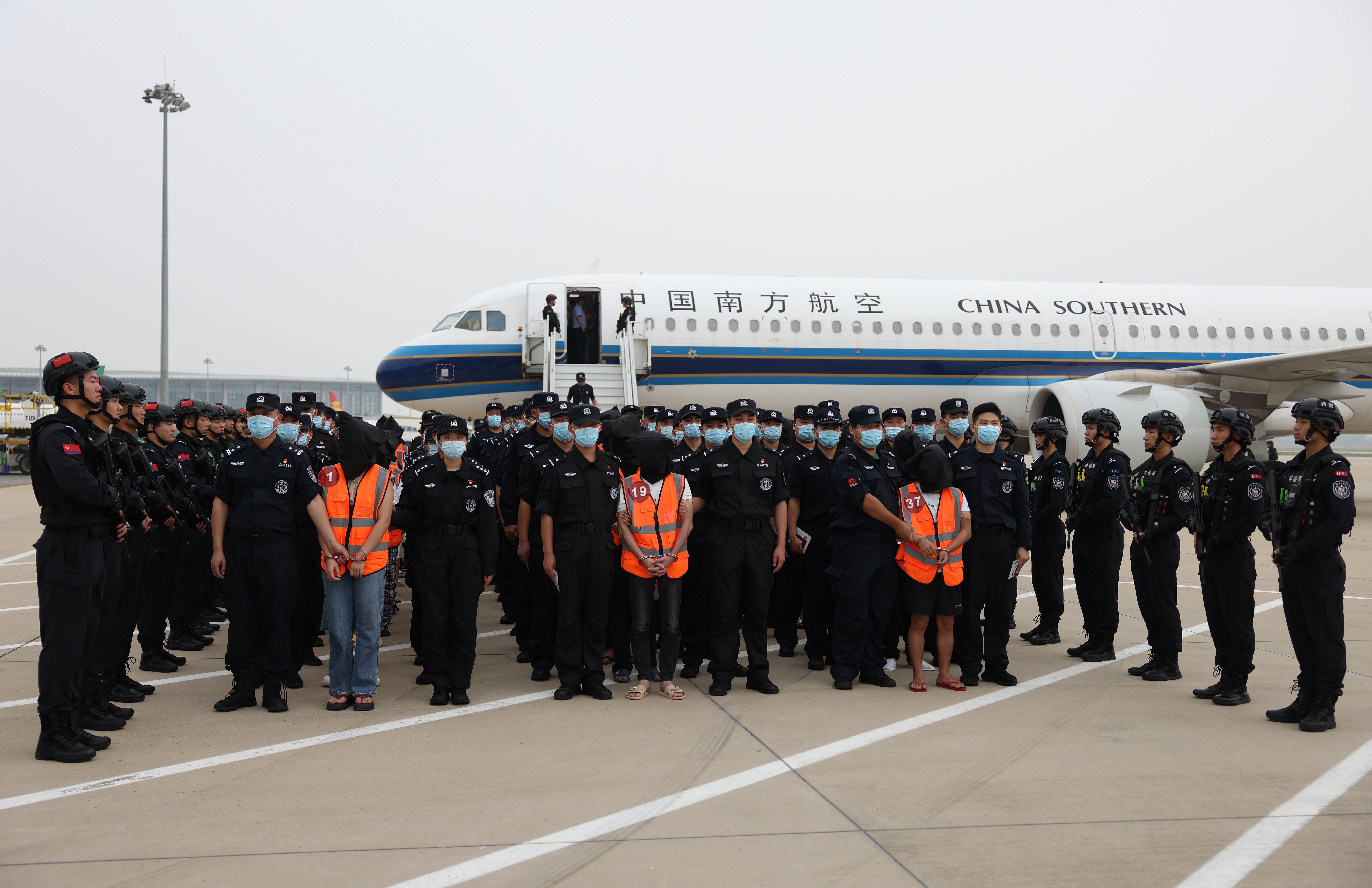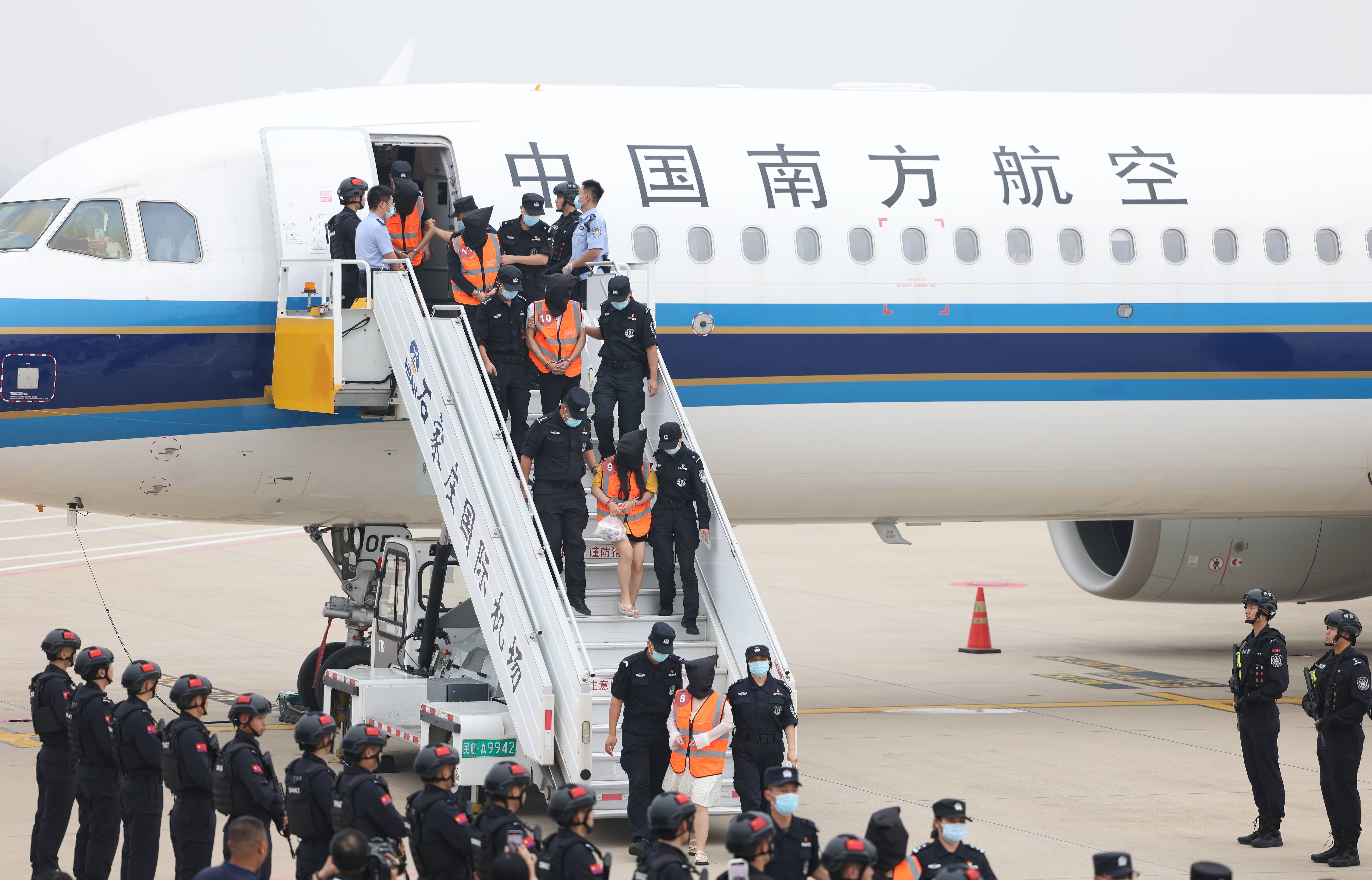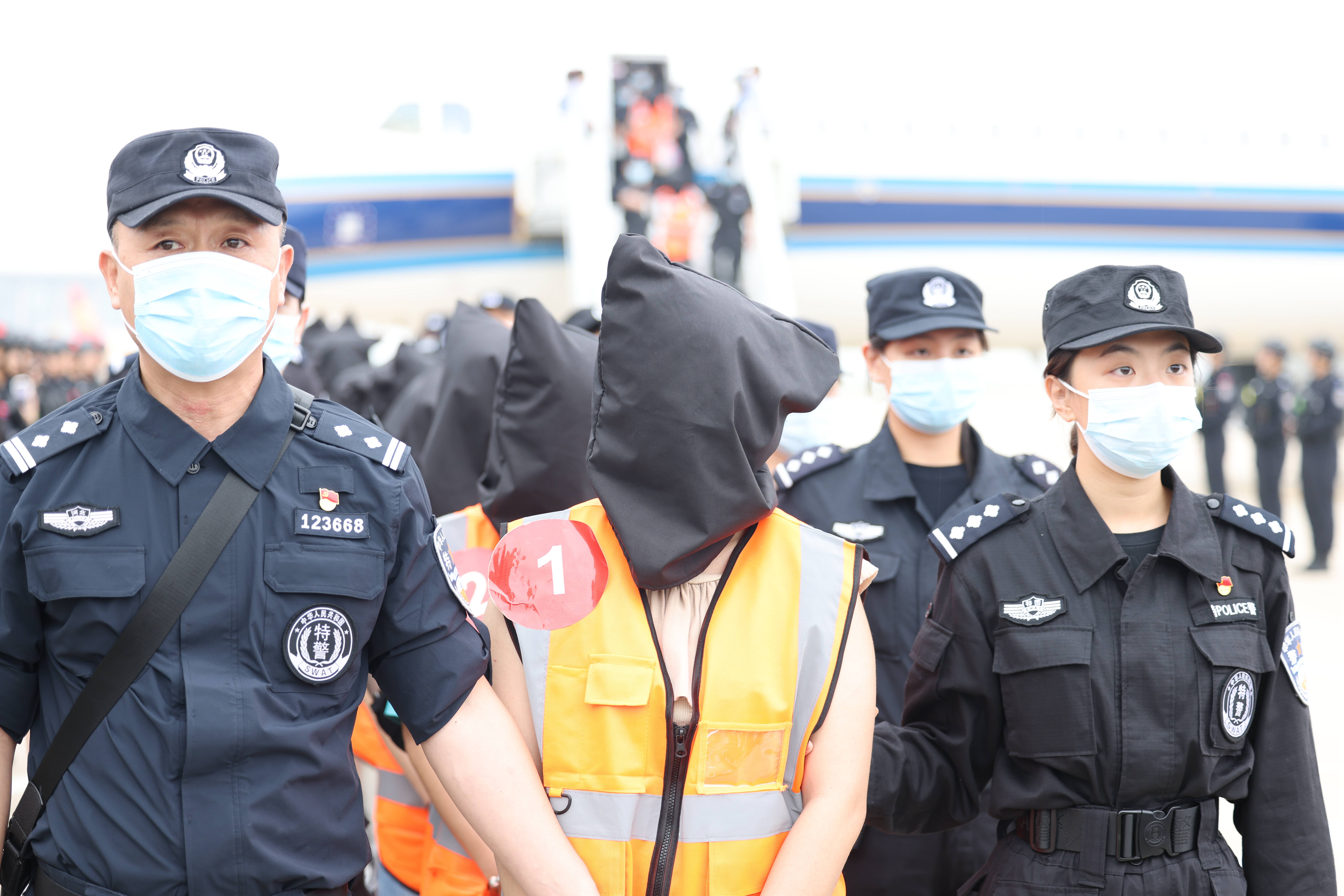 9月11日,54名电信诈骗嫌犯被河北警方从老挝押解到石家庄。新京报记者 李英强 摄