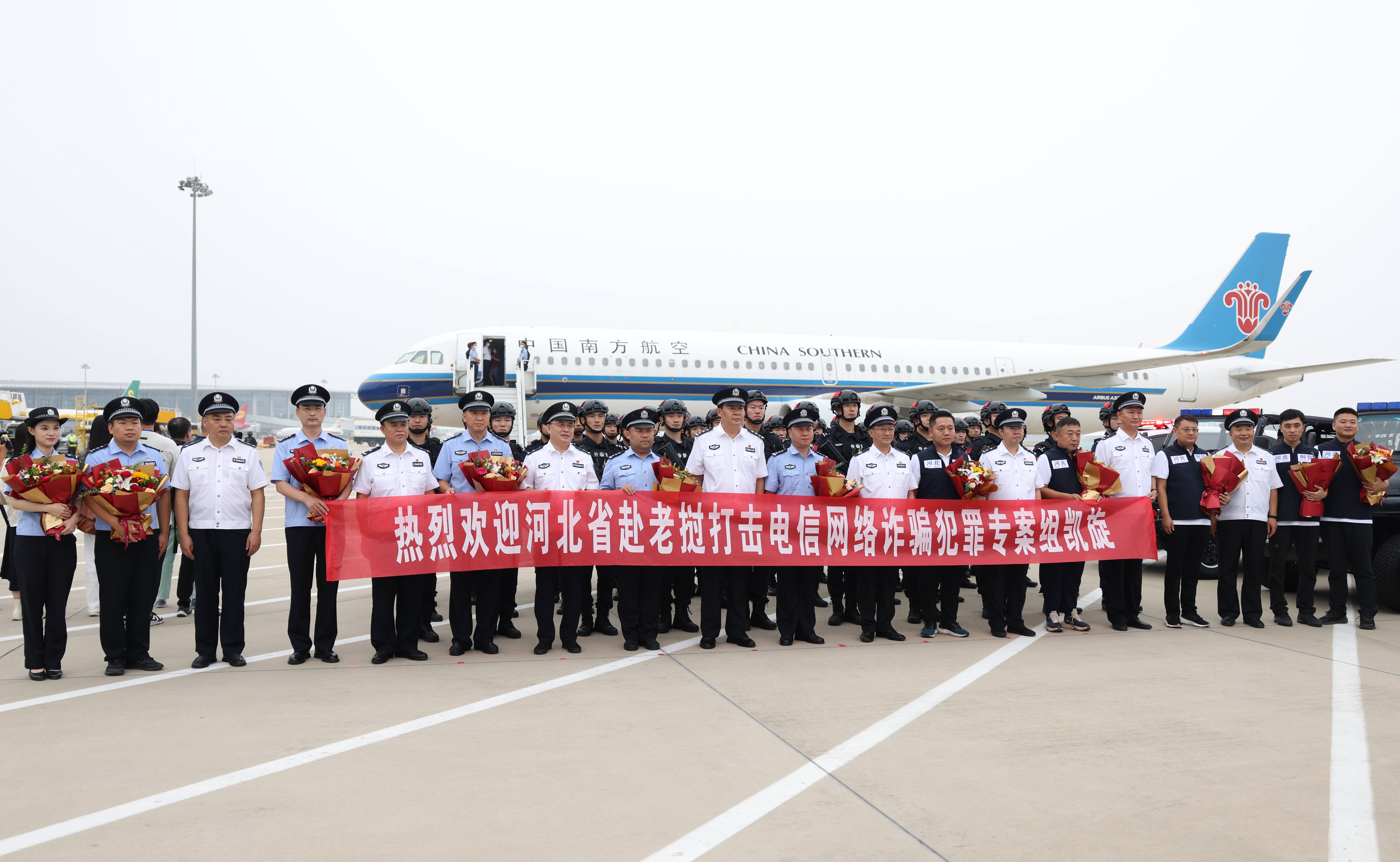 河北省副省长、公安厅党委书记、厅长王立彤到石家庄正定机场,迎接赴老挝打击电信网络诈骗犯罪专案组成员。王立彤介绍,此次行动是依照公安部和河北省公安厅党委统一部署,河北省公安厅刑警总队和保定市公安局派员,随公安部工作组赴境外开展打击电信网络诈骗犯罪国际执法合作。