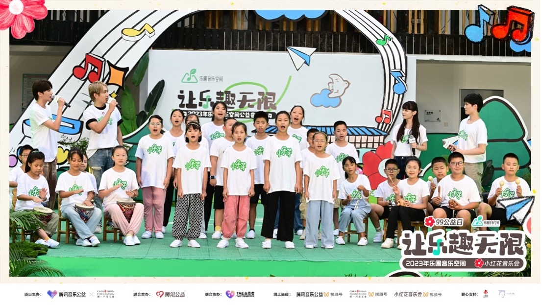 2019年起,腾讯音乐公益就携手陈一丹基金会,在乐圃音乐空间推出音乐主题夏令营,通过整合资源,以寓教于“乐”的课程设置,带领孩子们感受更广阔的音乐世界,并逐年扩大教学规模和提升课程质量,助力山区儿童的音乐梦想萌芽。今年8月24日,新一期的“让乐趣无限”2023年乐圃音乐空间夏令营顺利结营,并在99公益日的前夕举办乐圃音乐空间小红花音乐会,用美好清澈的声音,奏响成长“向善”的乐章。