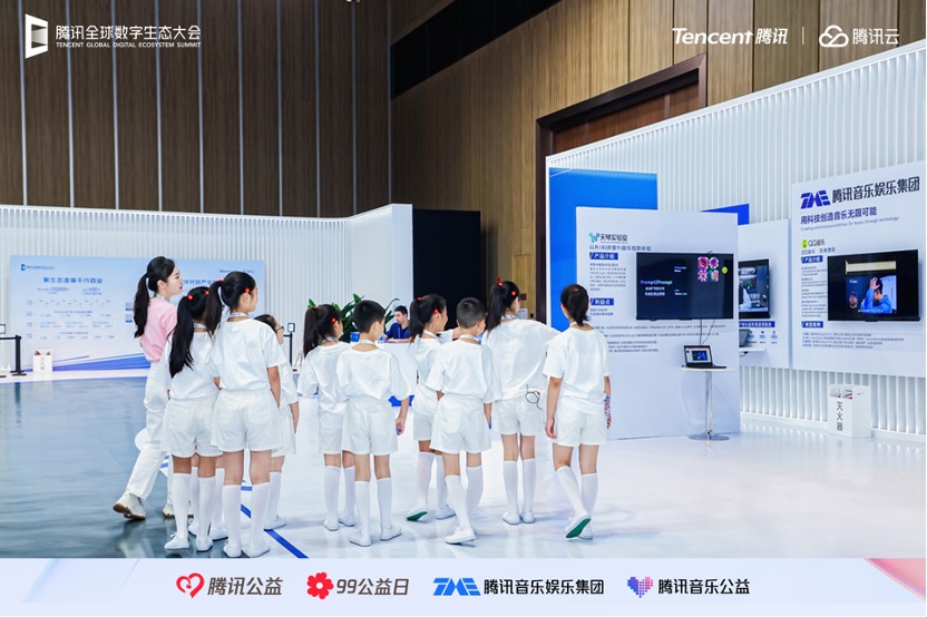 此前,2023腾讯全球数字生态大会在深圳国际会展中心开幕。在2023腾讯全球数字生态大会战略合作伙伴腾讯音乐、腾讯音乐公益携手腾讯公益联合呈献的“云湾之夜·小红花音乐会”特别活动上,乐圃合唱团的“小乐芽”们也登台倾情献唱《送你一朵小红花》。与此同时,腾讯音乐公益还借助此次大会优质的科技资源,为山区的孩子们开启了一道前沿科技的大门。腾讯音乐公益特意为小朋友们提供了提前感受本次生态大会互动式展区的机会,让孩子们能够零距离体验前沿科技的魅力,用自己的实际行动再度唱响“科技向善”乐章。