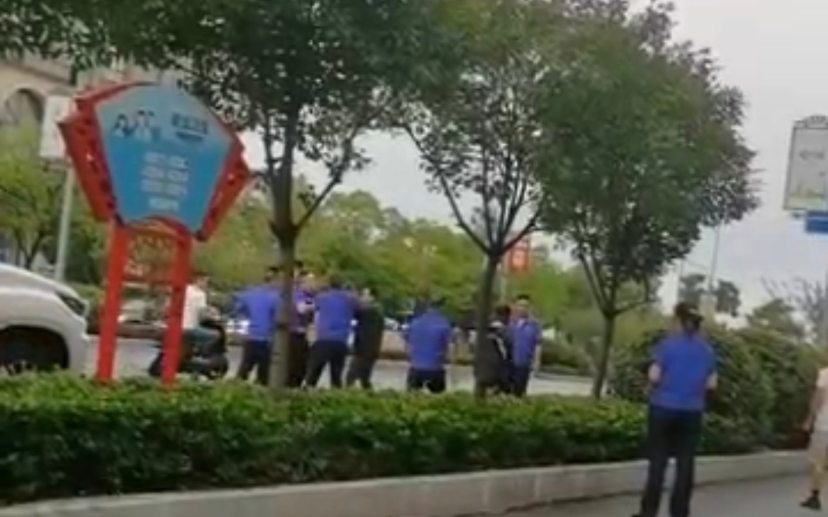 网传视频显示,几名身穿蓝色制服的人员疑似与一男子发生口角,一名穿蓝色制服的人员踢了男子一脚,男子倒在地上,随后又有人员对男子踢踹。