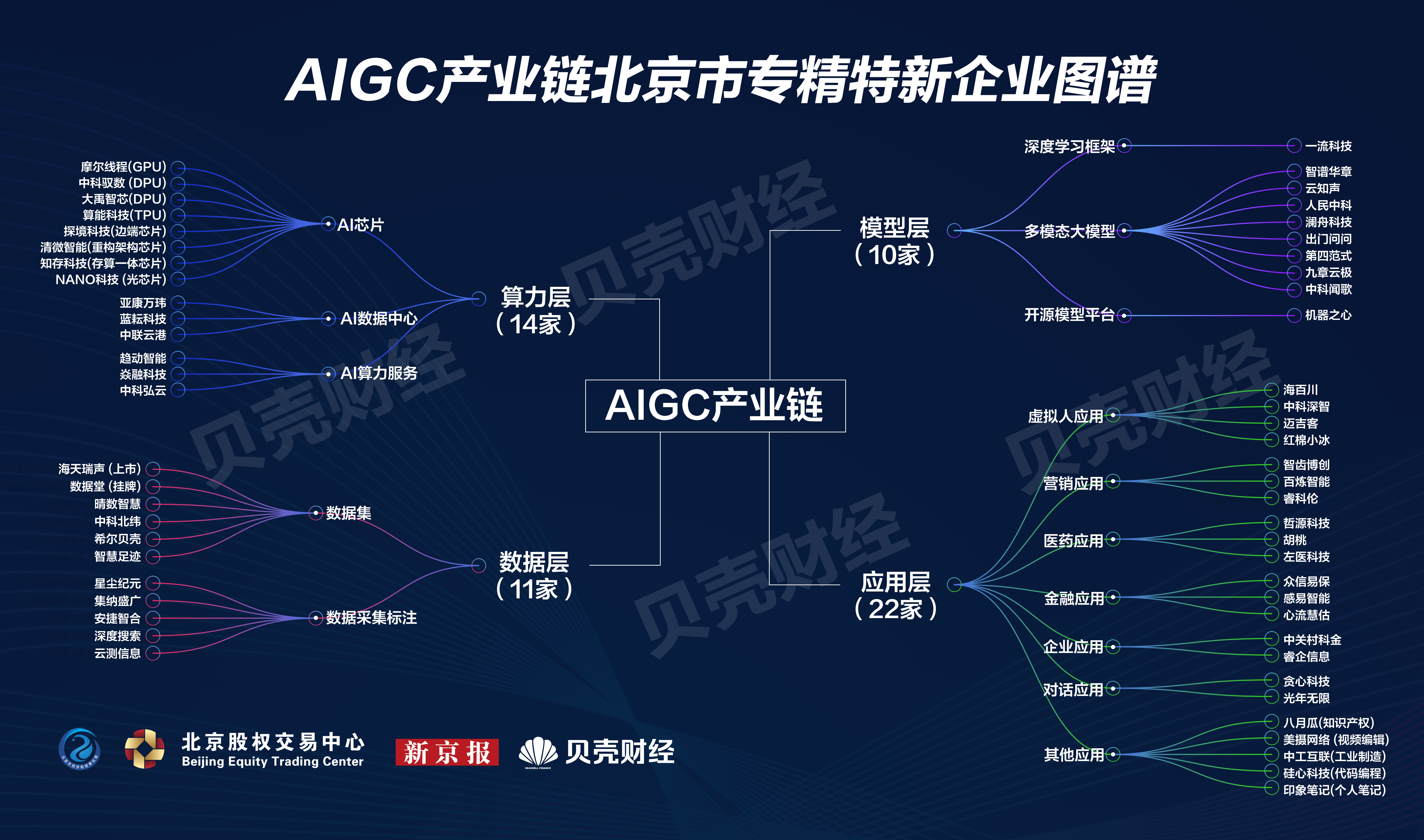 一图看懂|北京55家专精特新企业在AIGC产业链哪些关键层?