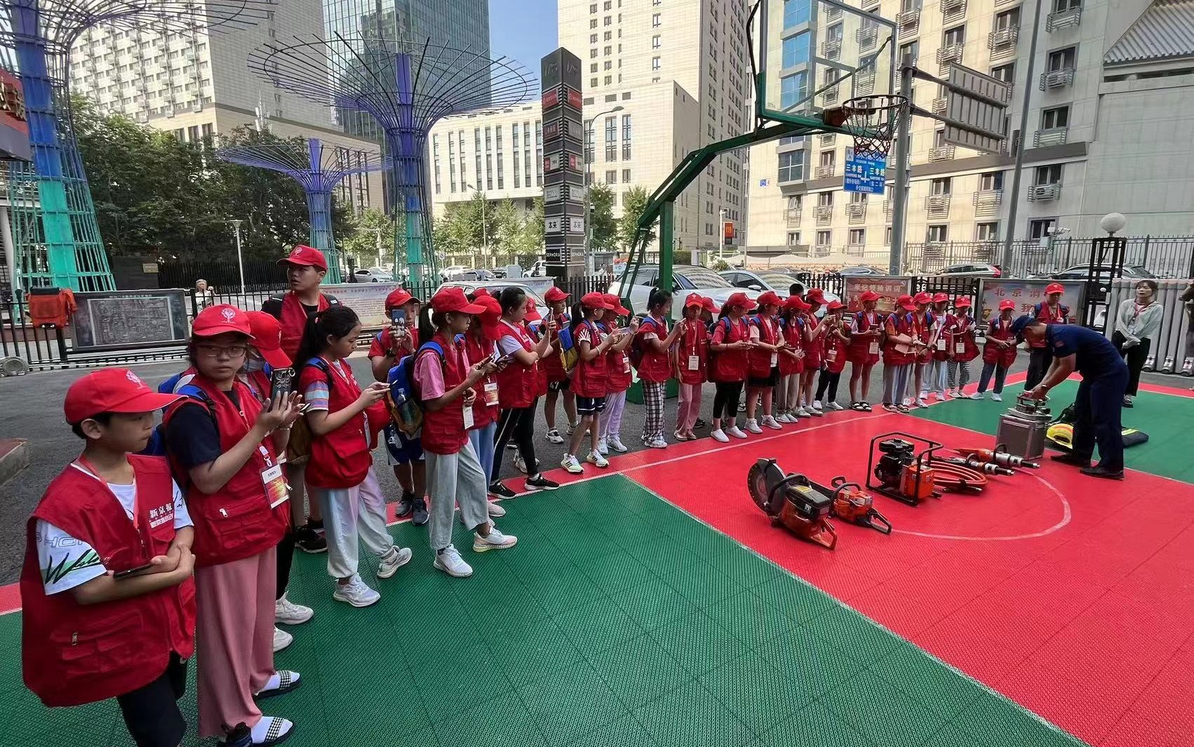 当天,小记者们在消防员带领下,走进消防队驻地相关功能区,了解消防员的工作与生活。消防员向小记者们介绍各种消防车的名称和用途,展示消防器具和服装的功能和使用方法,还让同学们体验消防服装的穿戴,让孩子们过足了“消防瘾”。小记者们和消防员们比赛穿消防服的速度,“重达80斤的消防服,消防员仅用30秒就穿完了,而小记者用了2分钟才穿完,这差距太大了!”来自清华大学附属小学昌平学校天北校区的齐泓翰感叹道。
