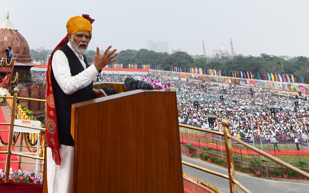 ▲8月15日,印度总理莫迪在德里出席独立日庆祝活动时发表讲话。图/新华社