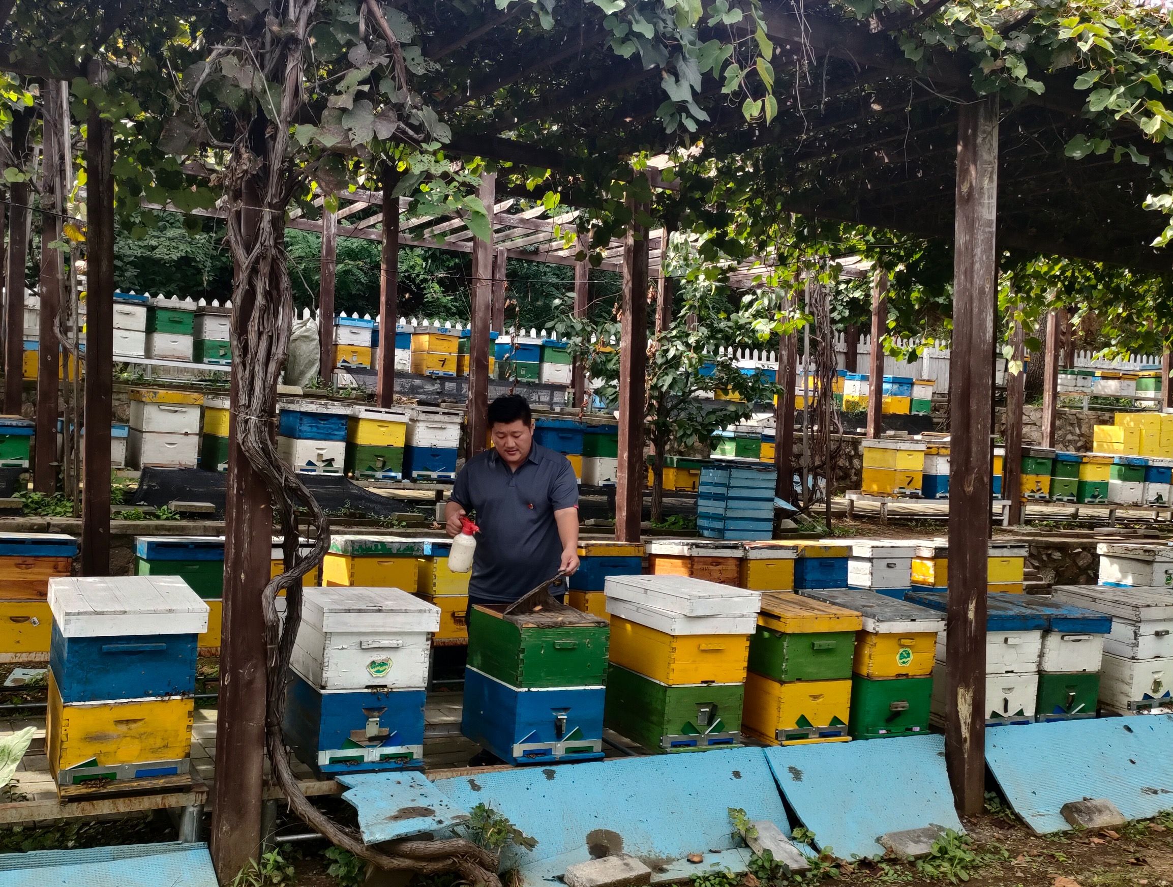 王唯伊从小在密云区太师屯镇龙潭沟村长大。他回忆道,上世纪90年代的周末,别人家孩子三五成群出门玩,他却坐着爷爷王成林的三轮脚踏车,去周边村落的蜂农家里收购蜂蜜。蜂农们看到这爷俩,总拿出家里好吃的东西招待他们,如一块凉水浸透过的西瓜,一把刚从树上打下的栗子。