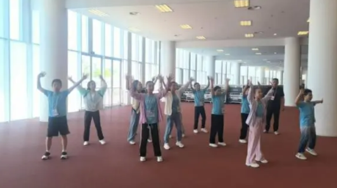 ▲为准备亚运会开幕式表演,12名孩子每天都认真排练。图/躬耕书院