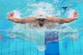 女子4x100米自由泳接力比赛中,二、三棒交接。