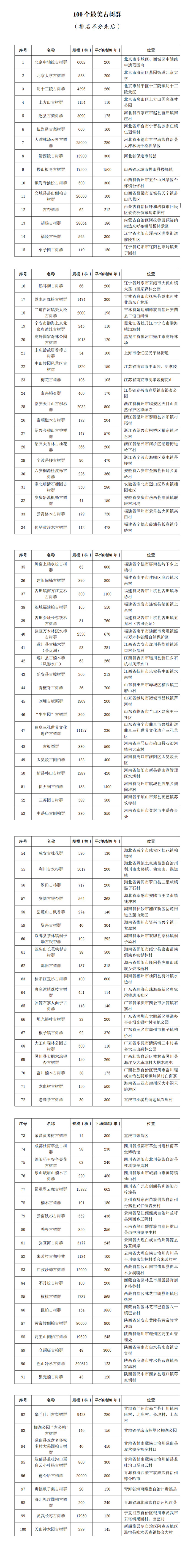 经过公众投票、专家评审、全网公示等环节,从全国推选出100株最美古树和100个最美古树群。