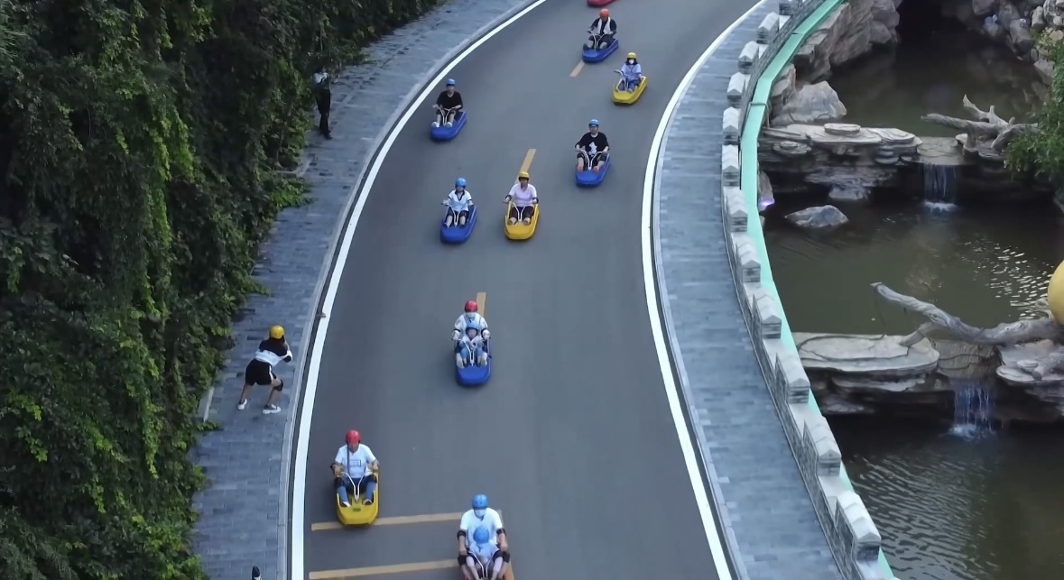 网红山地滑车是小镇的特色体验项目,2500米的滑道,有连续的发卡弯道和极速冲坡,可尽享速度与激情,吸引了众多游客前来体验打卡,他们风驰电掣的身影是梨树沟里一道靓丽的风景。