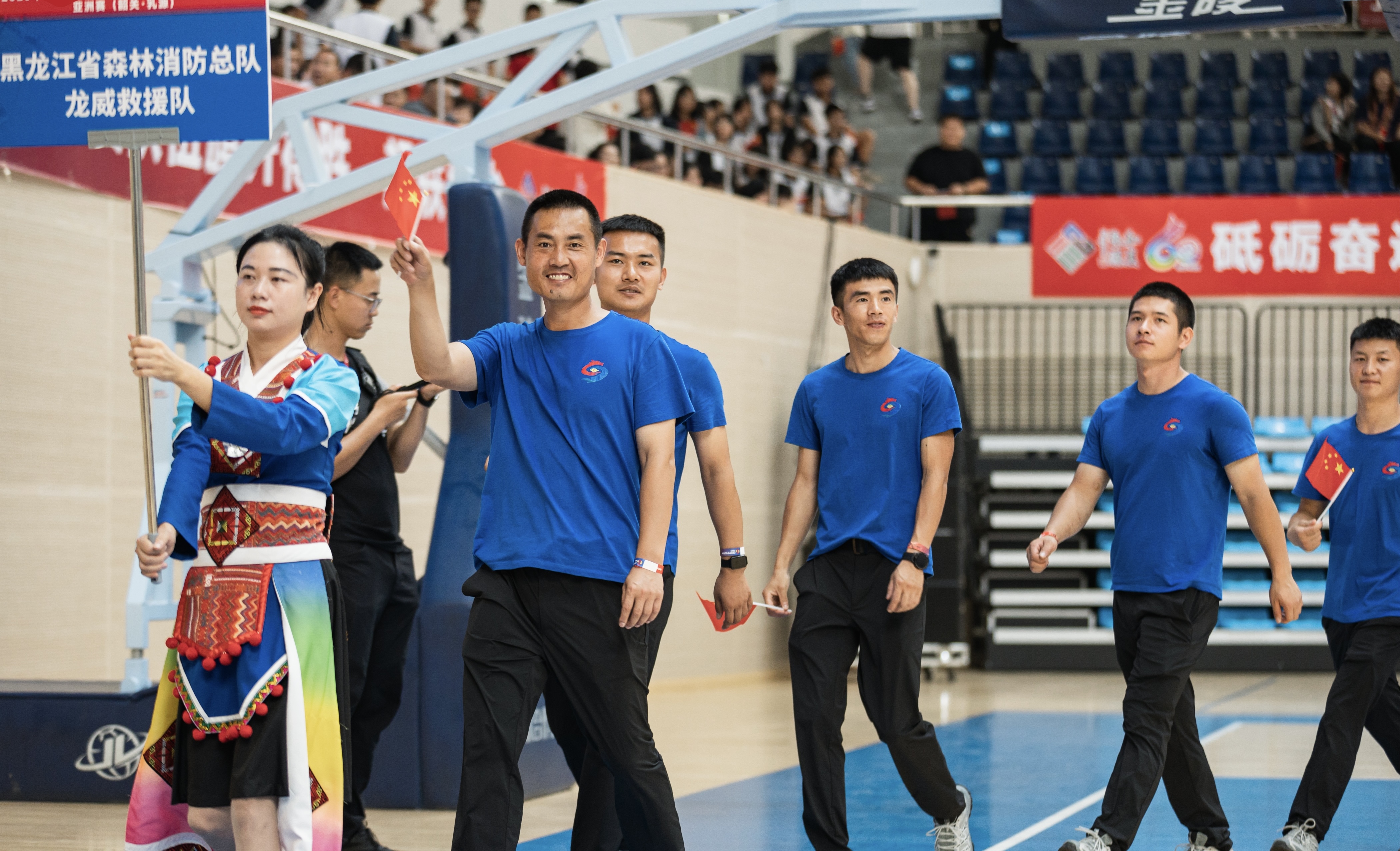 9月16日,队员在参加开幕式。 图源:黑龙江省森林消防总队
