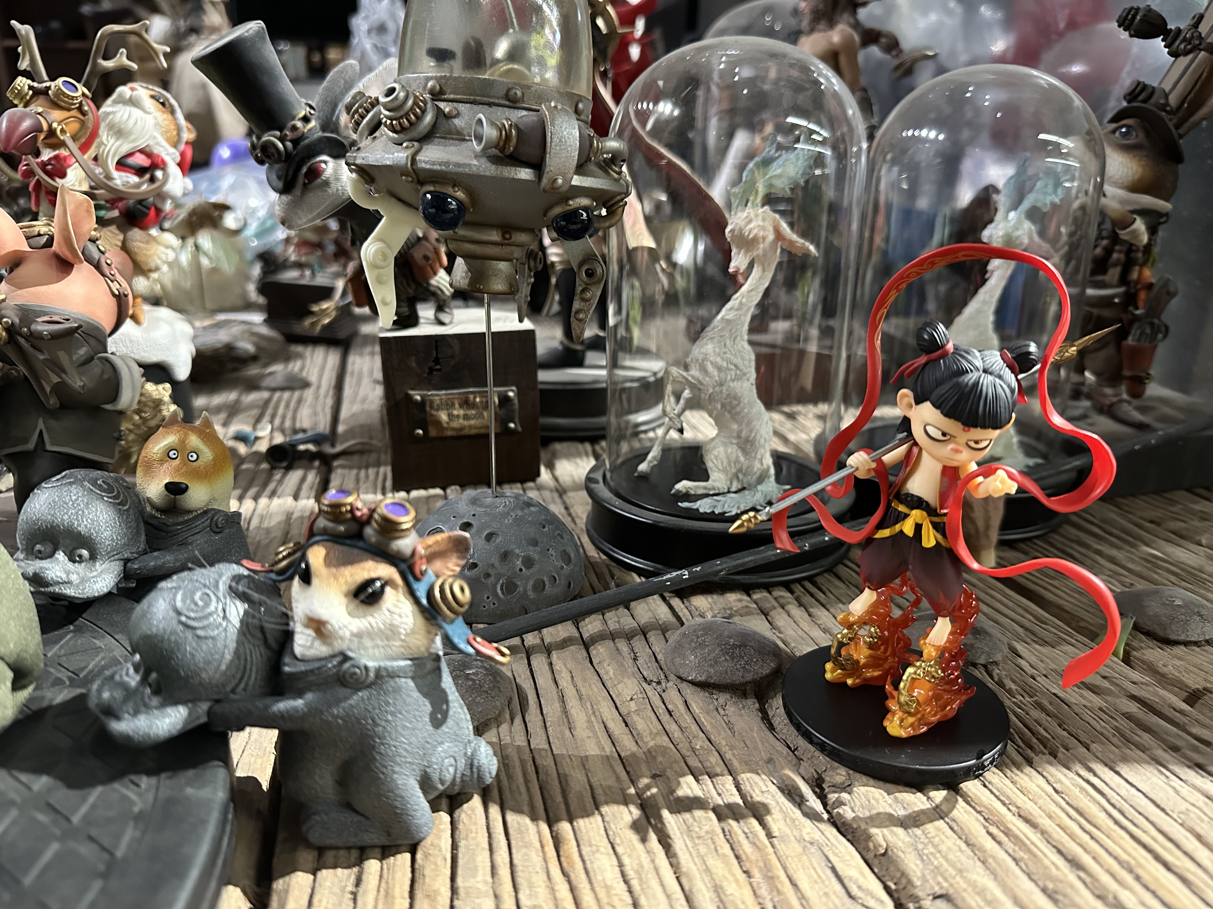 末那工作室是中国首屈一指的高端模型制作供应商,作品多以中国传统神话故事为主。工作室一层是展品厅,展架上《哪吒之魔童降世》《大圣归来》《大鱼海棠》等多部国产优秀电影的手办作品,以及山海经系列手工工艺品琳琅满目。二层是创作室,师傅们正在认真赶制全新的GK手办制品。其中一位师傅正在对手办进行翻模。他向我们介绍,一个20厘米左右的人形手办从产品设计、原画制作、3d建模到翻模拆件、涂装打样等,制作周期大约几个月,要对每一个细节精雕细琢才能打造出优质的手办作品。