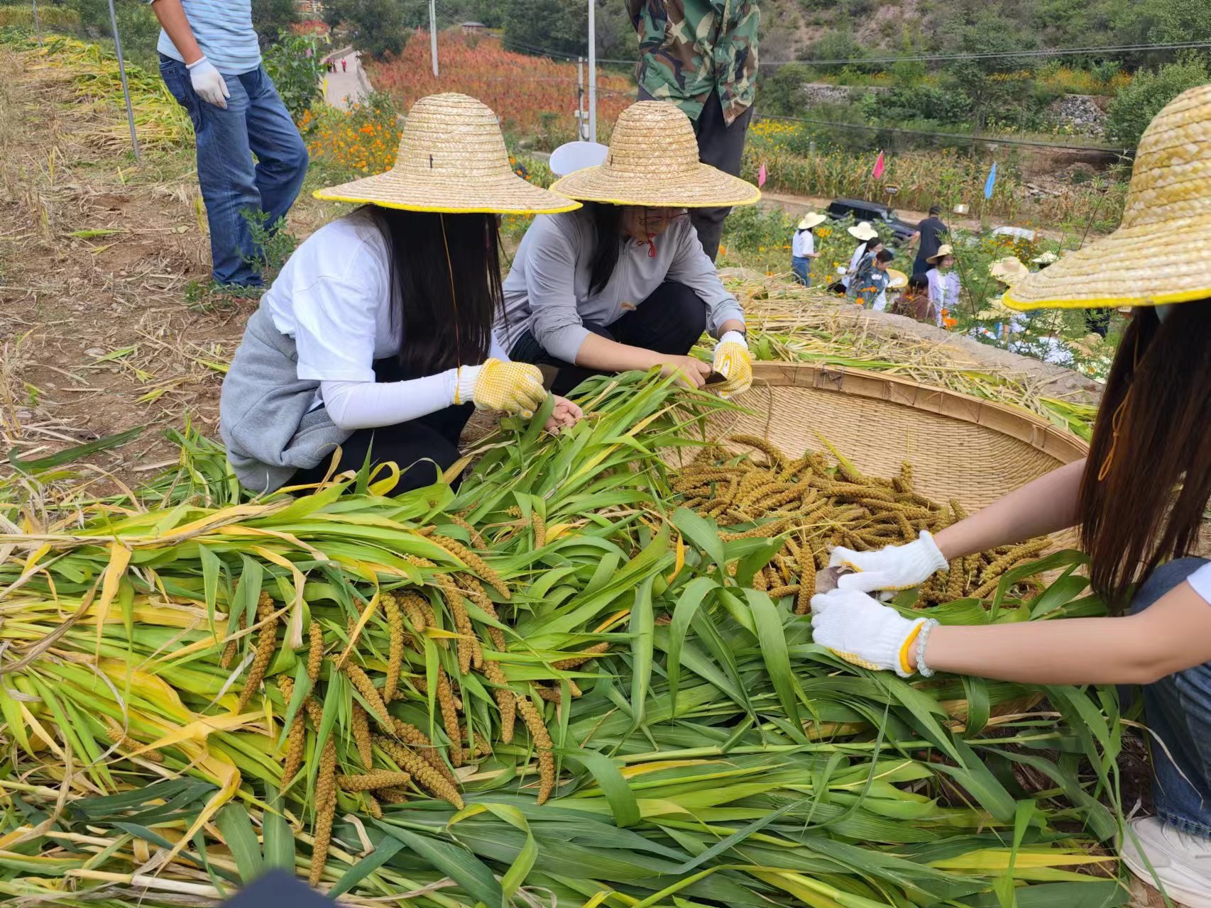 秋收之际,北京联合大学的师生来到门头沟区清水镇下清水村,和村民一起进行秋收活动。门头沟区委宣传部供图