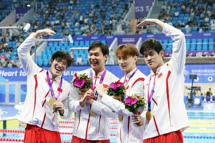 杭州亚运会 | 破纪录!男子4x100米自由泳接力中国队夺冠