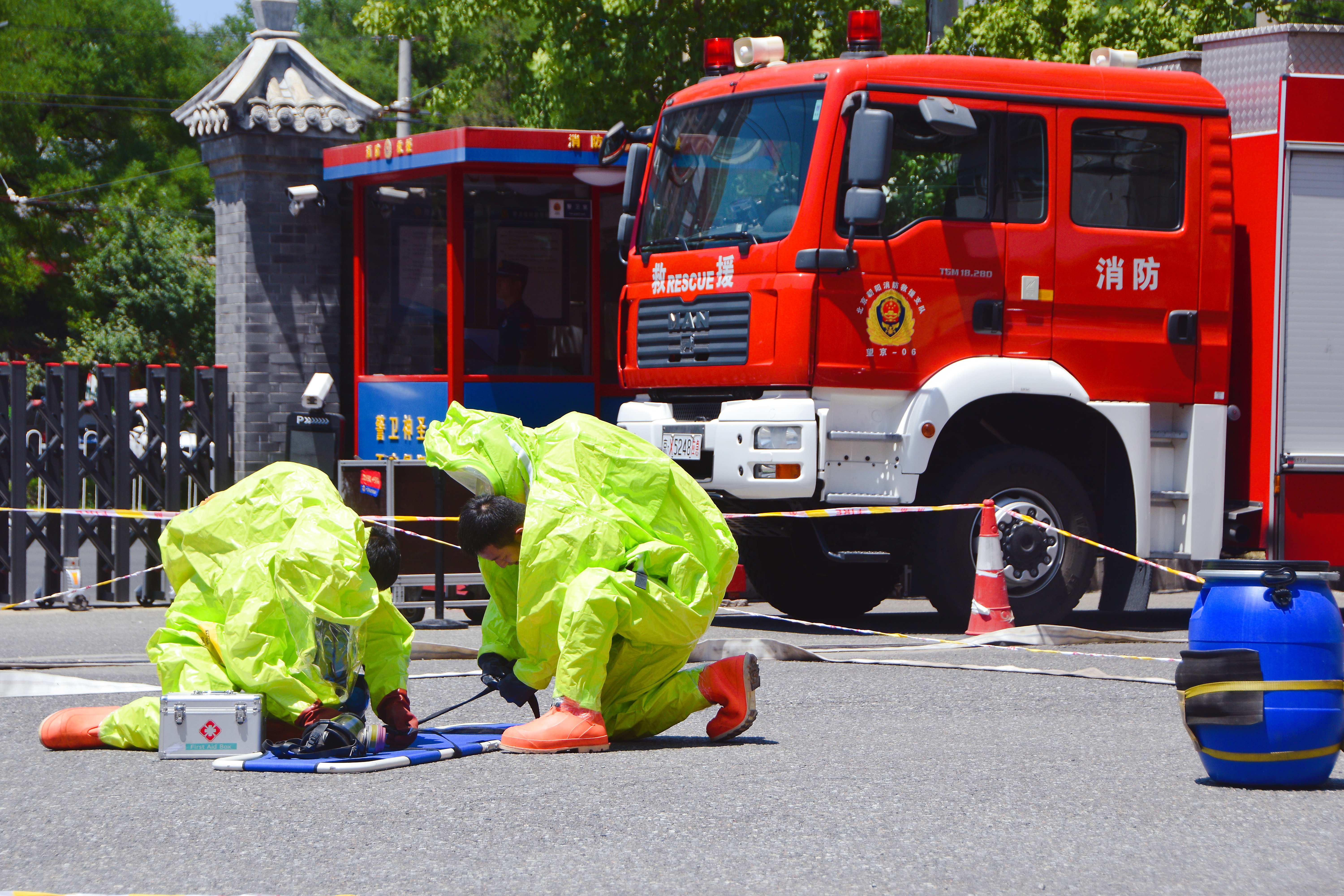 消防指战员开展拉动演练。图源:朝阳区消防救援支队