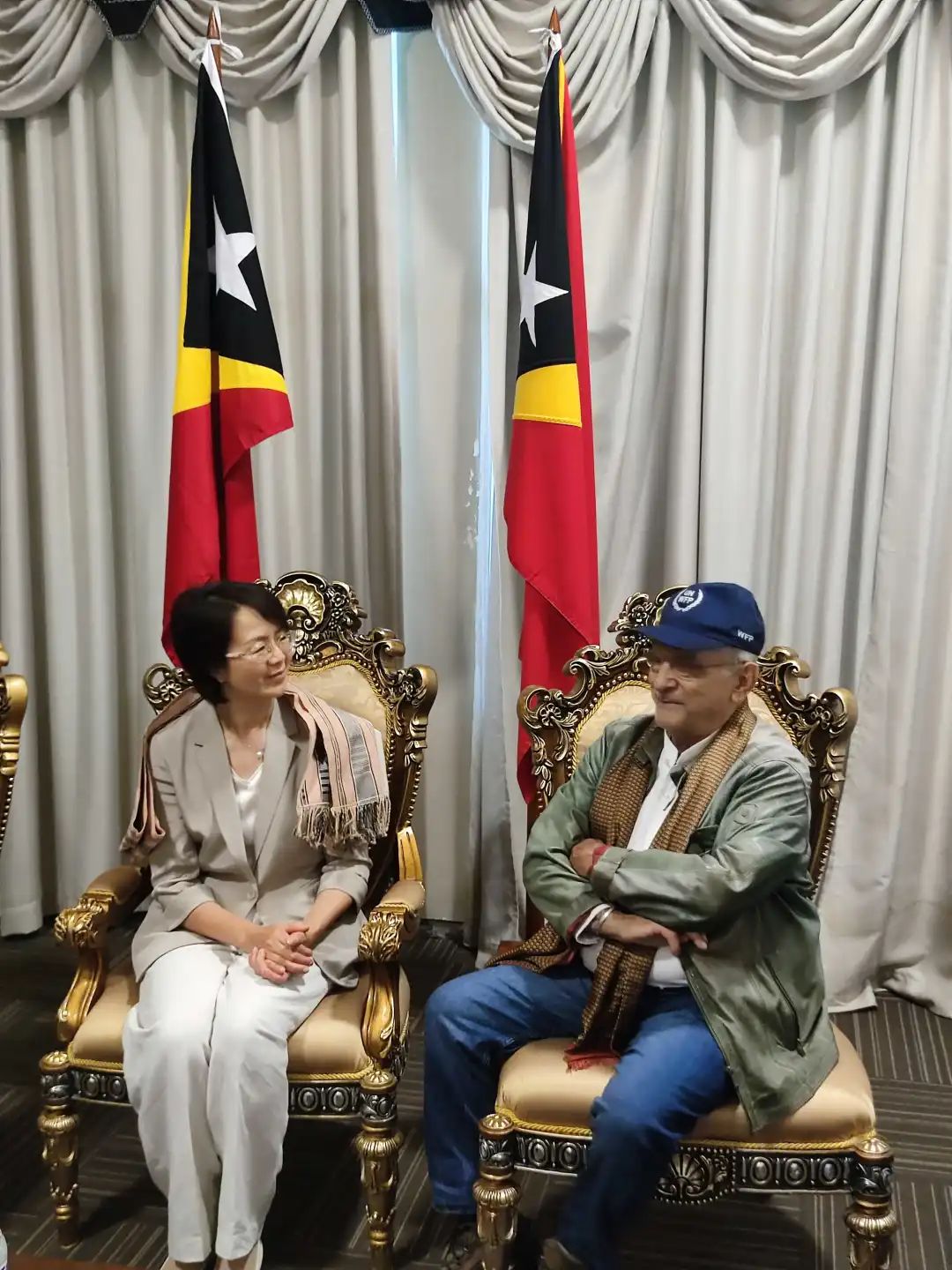 9月21日至25日,东帝汶总理夏纳纳·古斯芒出席杭州亚运会开幕式。习近平主席同夏纳纳总理成功会晤,两国领导人一致同意将双边关系升级为全面战略伙伴关系,阐述了对彼此关切的政治、经济、民生问题以及国际秩序的立场,明确将在产业振兴、基建发展、粮食自给、民生改善方面开展更多务实合作。