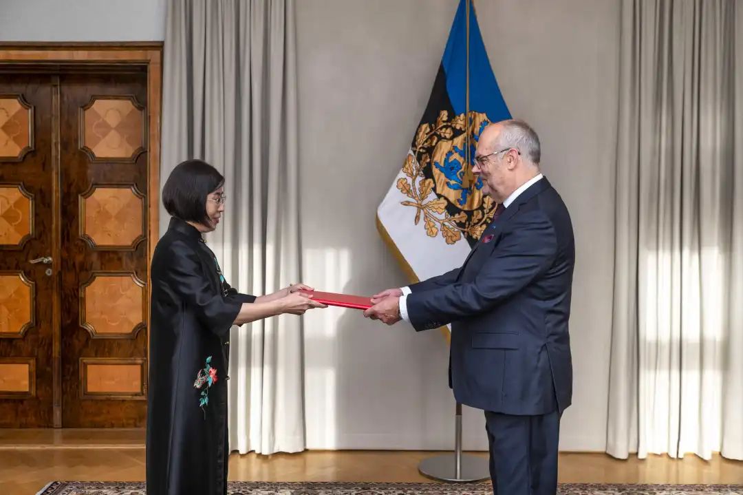 新任驻爱沙尼亚大使郭晓梅,向爱沙尼亚总统卡里斯递交国书