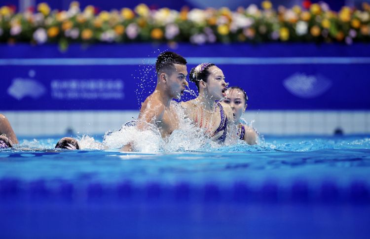 中国队男选手石浩玙首次亮相亚运会赛场。2023年,世界泳联推出花样游泳新规则:集体项目允许最多两名男选手上场。