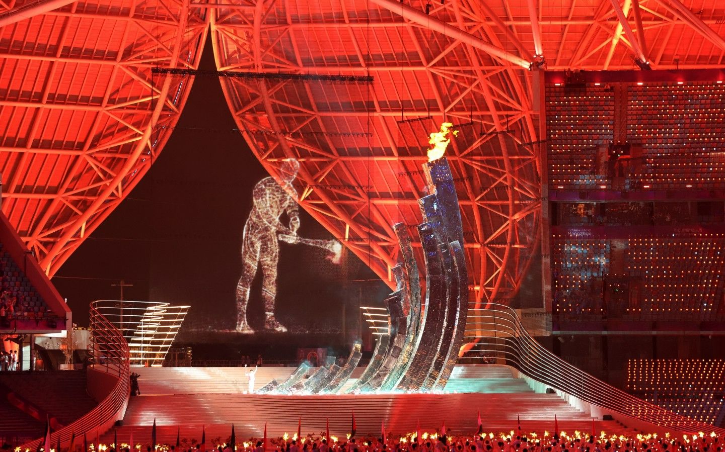 “数字火炬手”点燃杭州亚运会火炬。新京报记者 王贵彬 摄