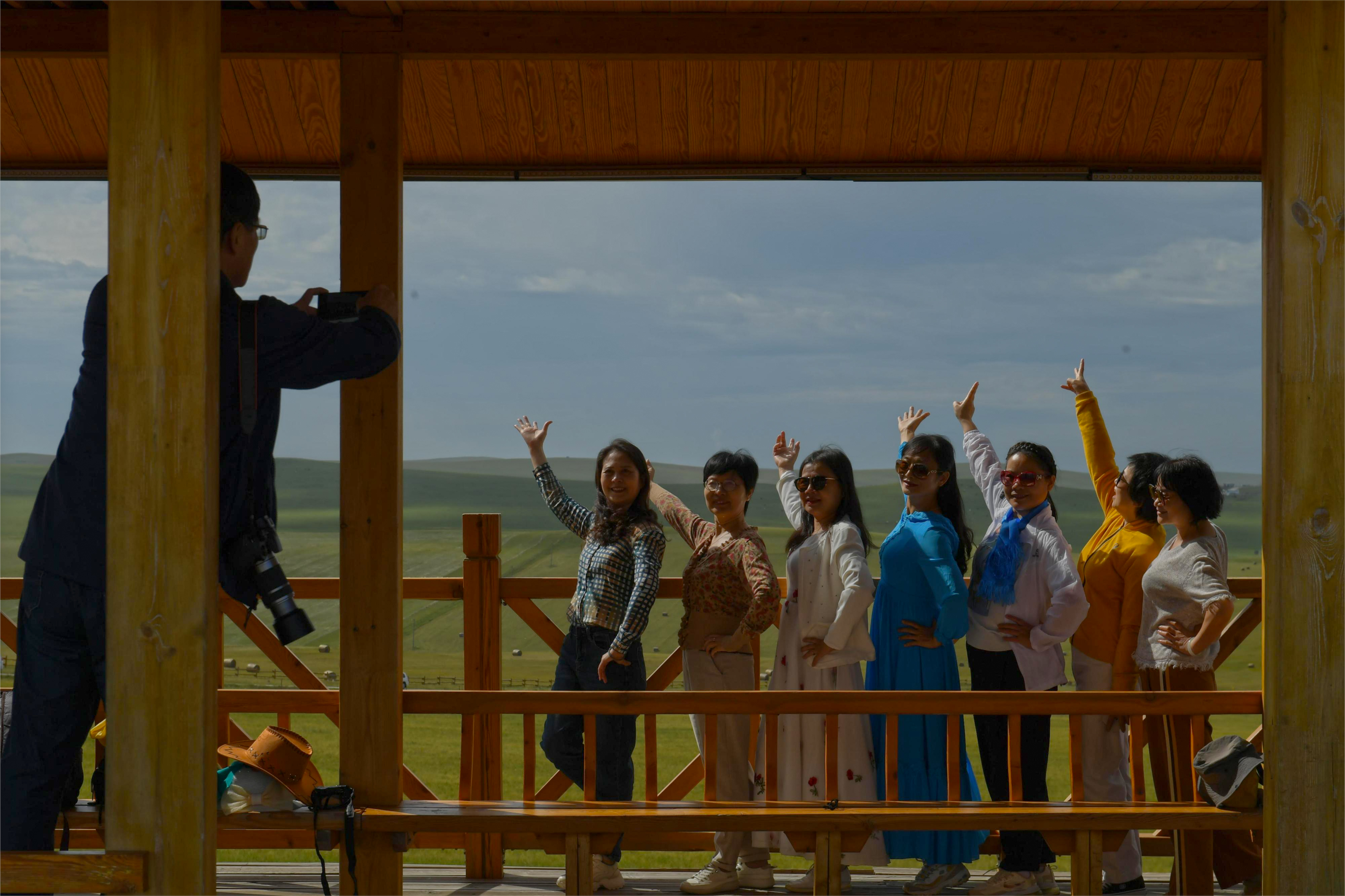 国庆假期,游客在陈巴尔虎旗莫尔格勒河景区拍照留念。崔林屹 摄