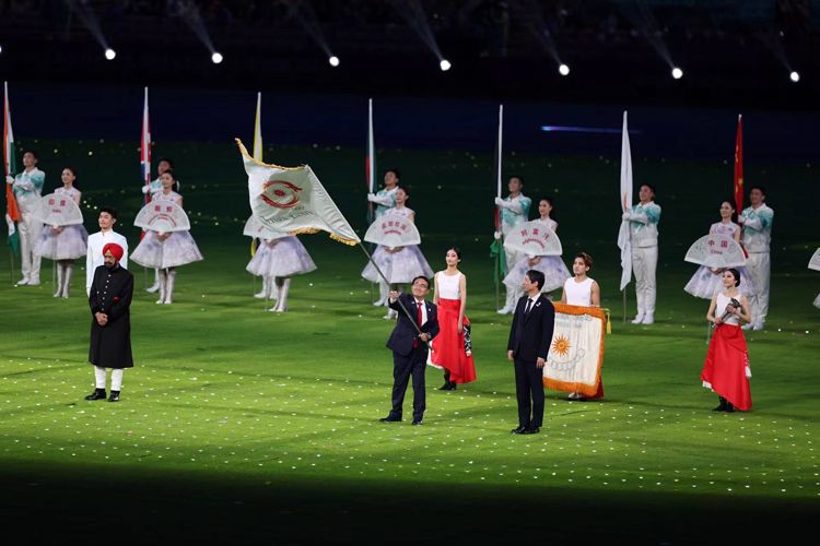第19届亚洲运动会闭幕式上进行了会旗交接仪式,会旗交接日本名古屋。