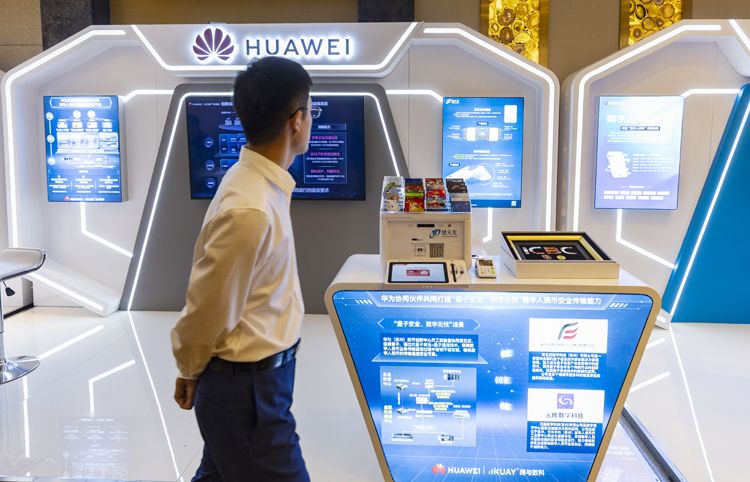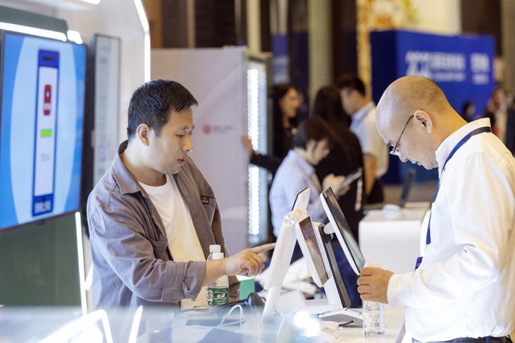 本届论坛设数字人民币体验区,集中展示近一年来数字人民币在拉动居民消费、服务国家战略、助力数字化和绿色转型等方面的建设成果,充分体现数字人民币的“人民性”。图为丽泽商务区参会代表体验数字人民币设备。